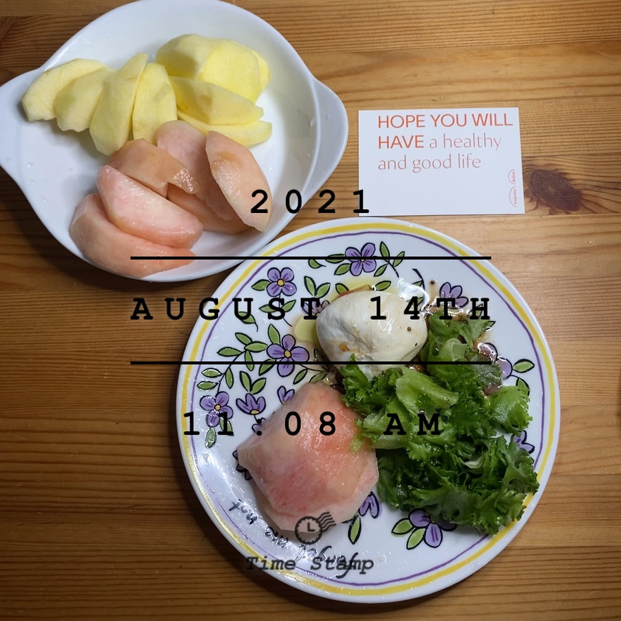 •동료가 준 샐러드, 부리타 치즈,올리브 오일, 발사믹 소스, 복숭아(사과 조금)