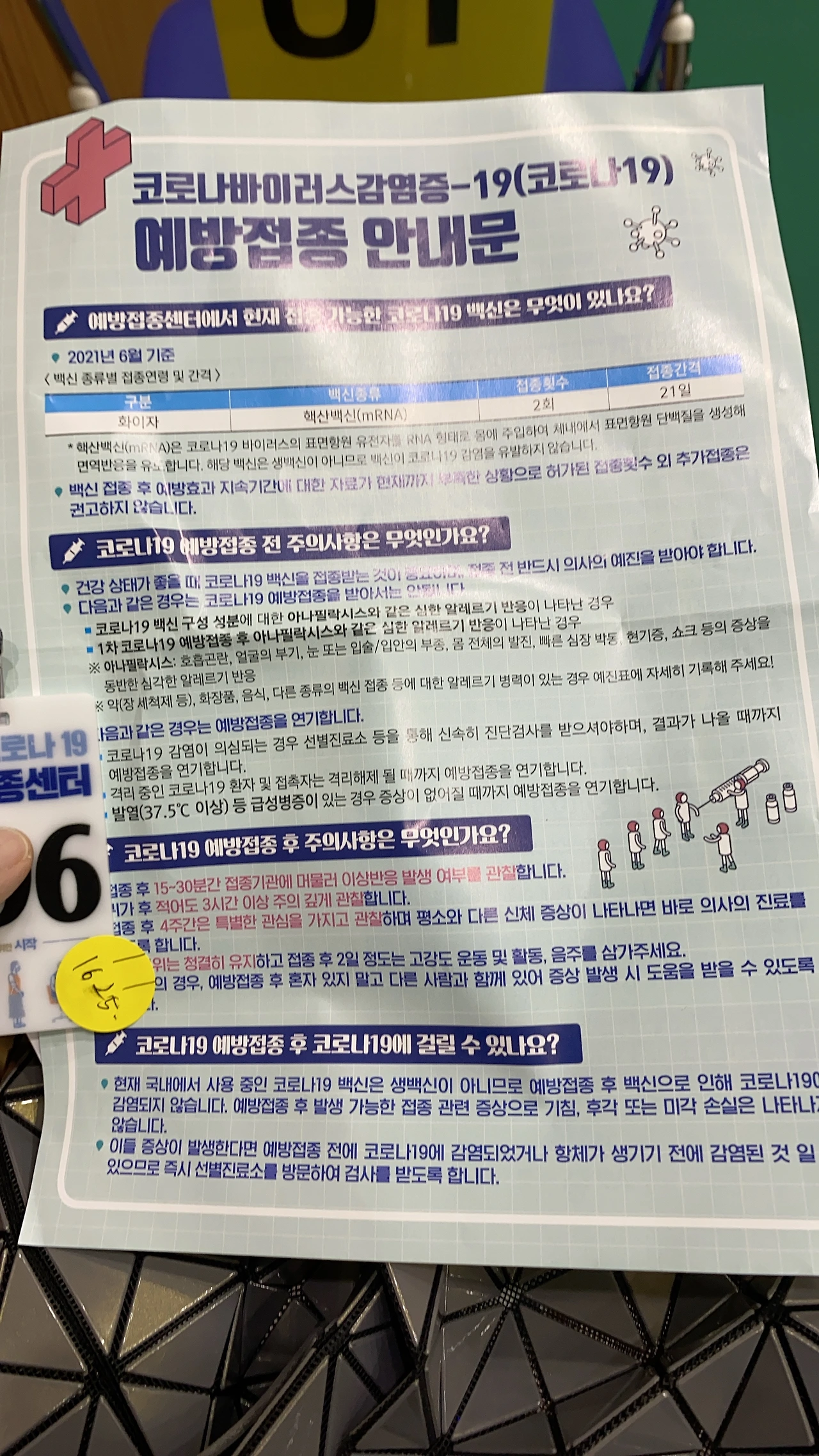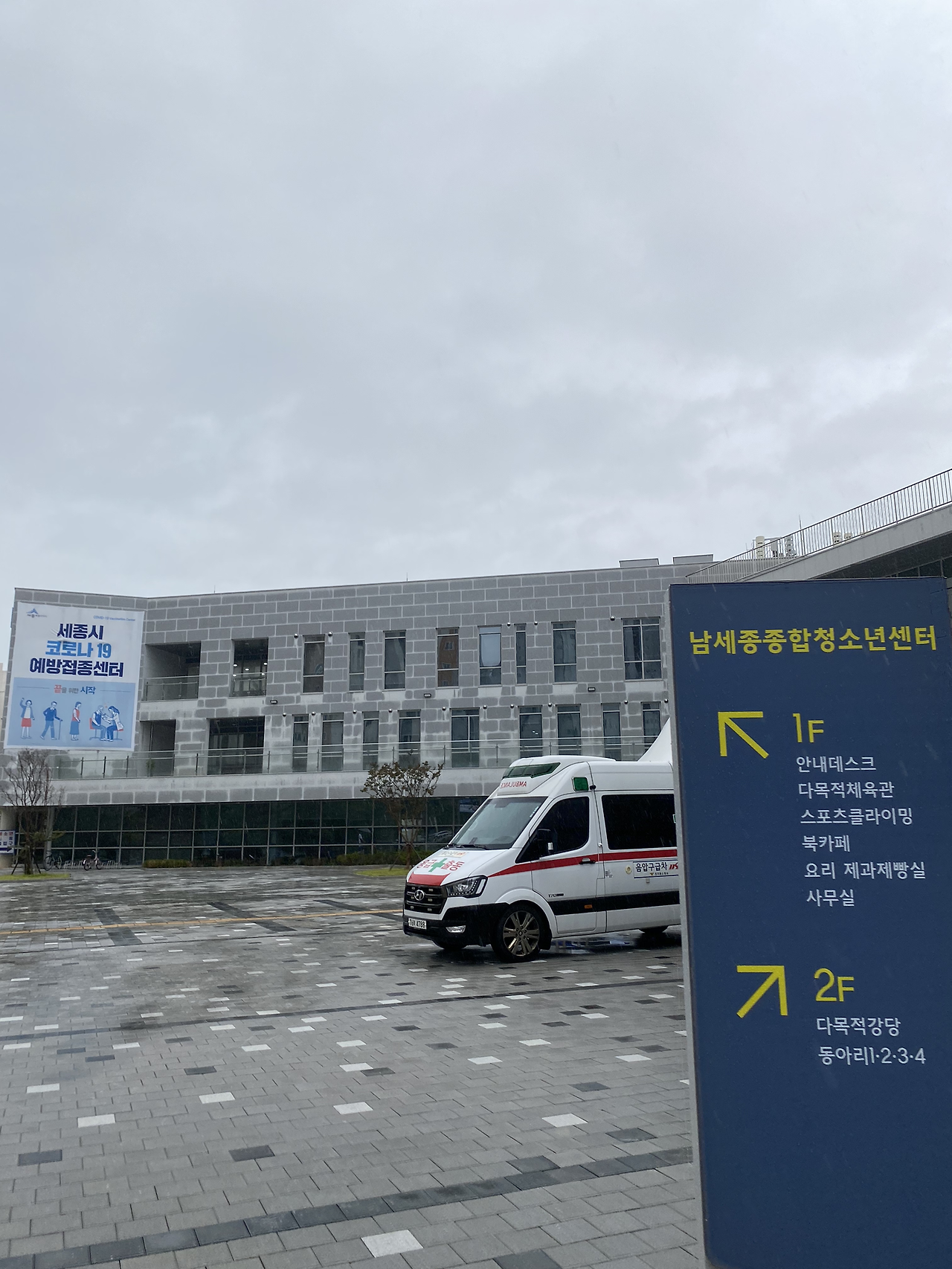 몇 주간 기다렸던 코로나19 백신 1차 접종의 날이 다가왔다. 8월 23일 월요일, 공가를 쓰고 사는 도시에 유일한 예방접종센터로 발걸음을 향했다. 연이은 남편의 휴가일로 오늘 예방접종센터까지 배웅해주었다. 비가 꽤 많이 내림에도 불구하고 예방접종센터에는 많은 사람들이 자리를 지키고 있었다.