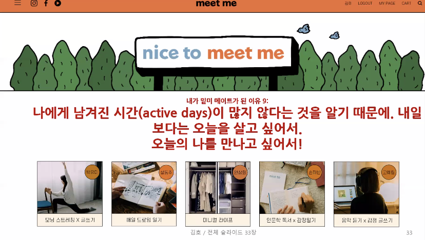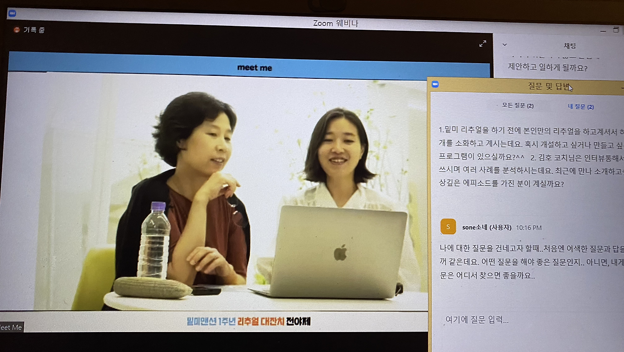 - 밑미 1주년을 맞아 열린 전야제 행사 강연(김호 대표님, 최인아 대표님)에 참여했고, 오늘 아침에는 즐겨