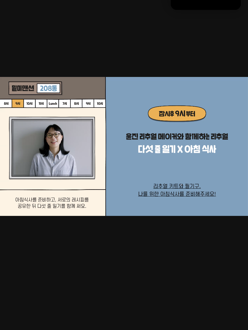 오전에 나서기 전에 밑미에서 1주년을 맞아 여러 리추얼 프로그램들을 1시간씩 맛보기로 선보였는데, 모두 들을 수 없었던 터라 기존에 참여했던 리추얼 프로그램에만 짧게 참여해보기로 했다. 다른 날보다 체험이 많았던 날이었다.
