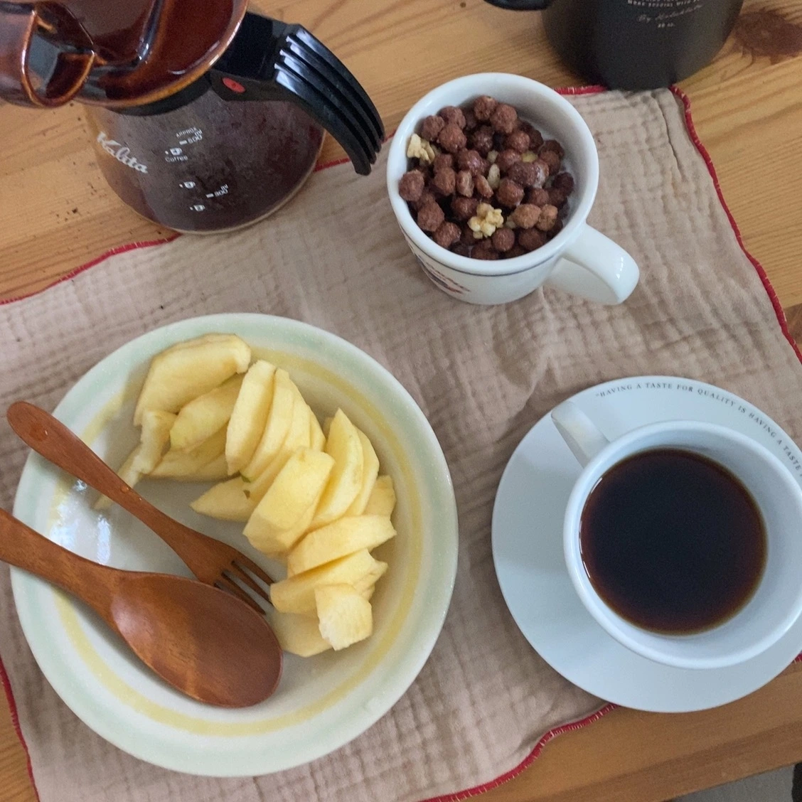- 간단히 커피 한 잔을 내려마시려고 했는데, 윤진님의 <다섯줄일기아침식사> 리추얼을 맛보기 하며, 사과