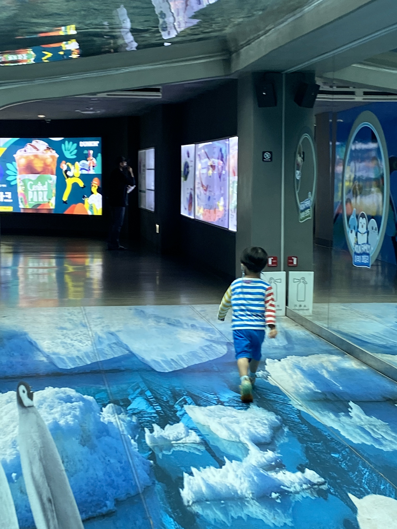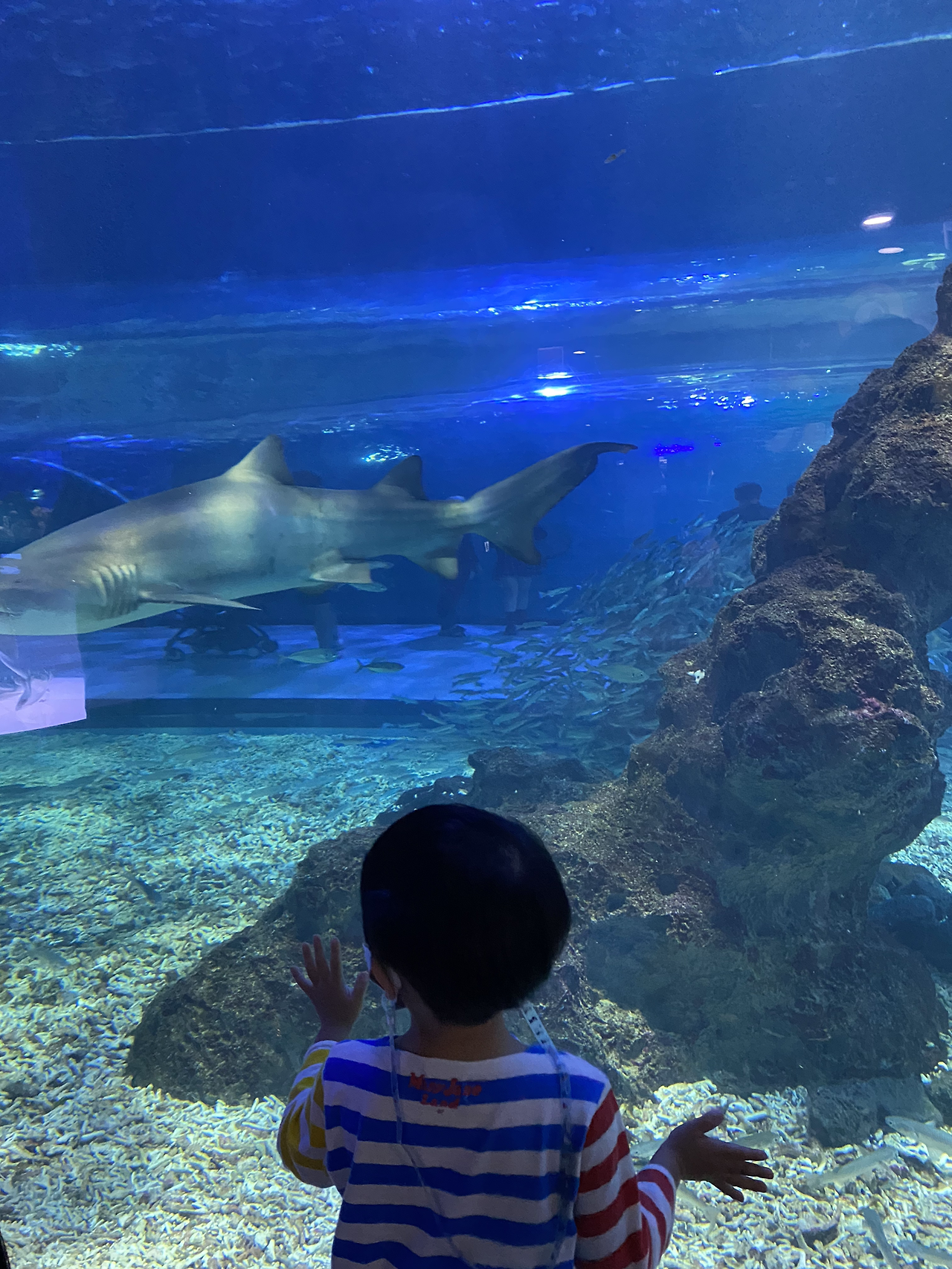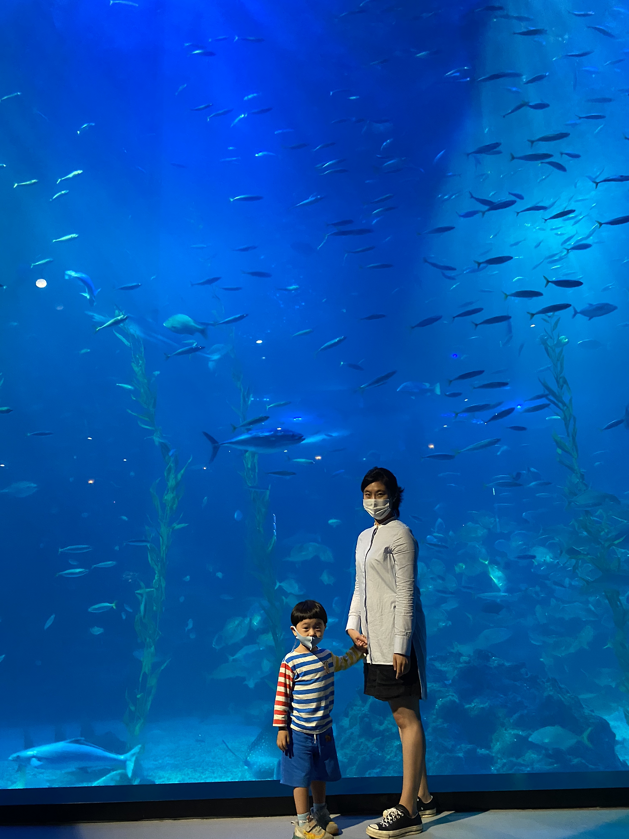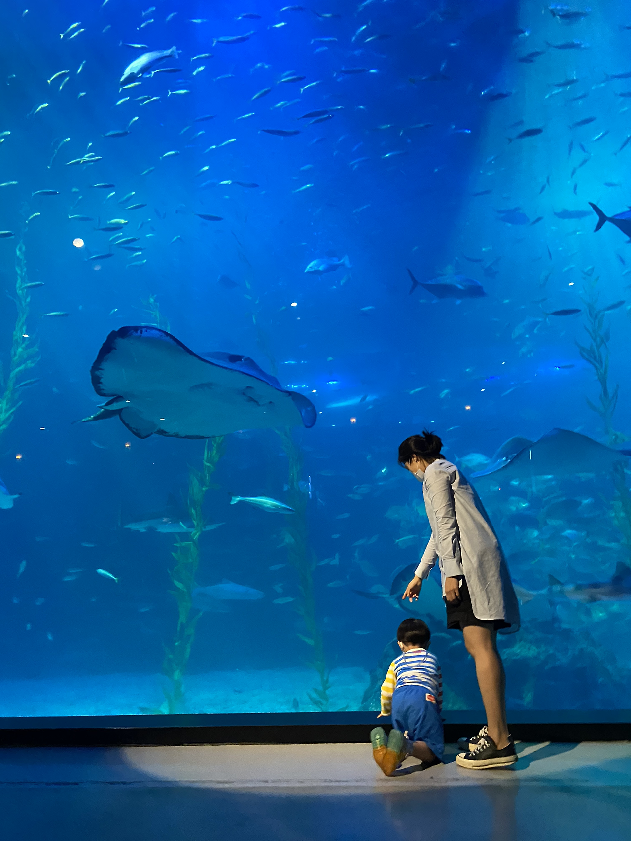 여행 나흘째가 되는 9월 3일은 궂은 날씨가 예상되어 아쿠아리움을 일정으로 잡았다. 한 공간에서 1시간 넘게 공간 투어를 하기 어려운 아이의 나이를 생각하여 풀 패키지권이 아닌 오후 4시 이후 입장권을 사전 구매하여 성인 2명과 소인 1명으로 각각 2만 원대의 관람권(아쿠아리움만)으로 다녀왔다. 36개월이면 입장권을 내는 전시관에서 무료의 경우가 종종 있으나, 아이는 9월 2일 생일을 기점으로 9월 1일은 36개월 미만이었고, 9월 2일~9월 4일은 36개월 이상이 되어 무료입장대상이 아닌 소인에 포함된 경우가 생겼다. 아직 아이가 어리다면 생일기준으로 무료로 관람가능한 전시들을 동선으로 짜봐도 좋을 듯 싶다.