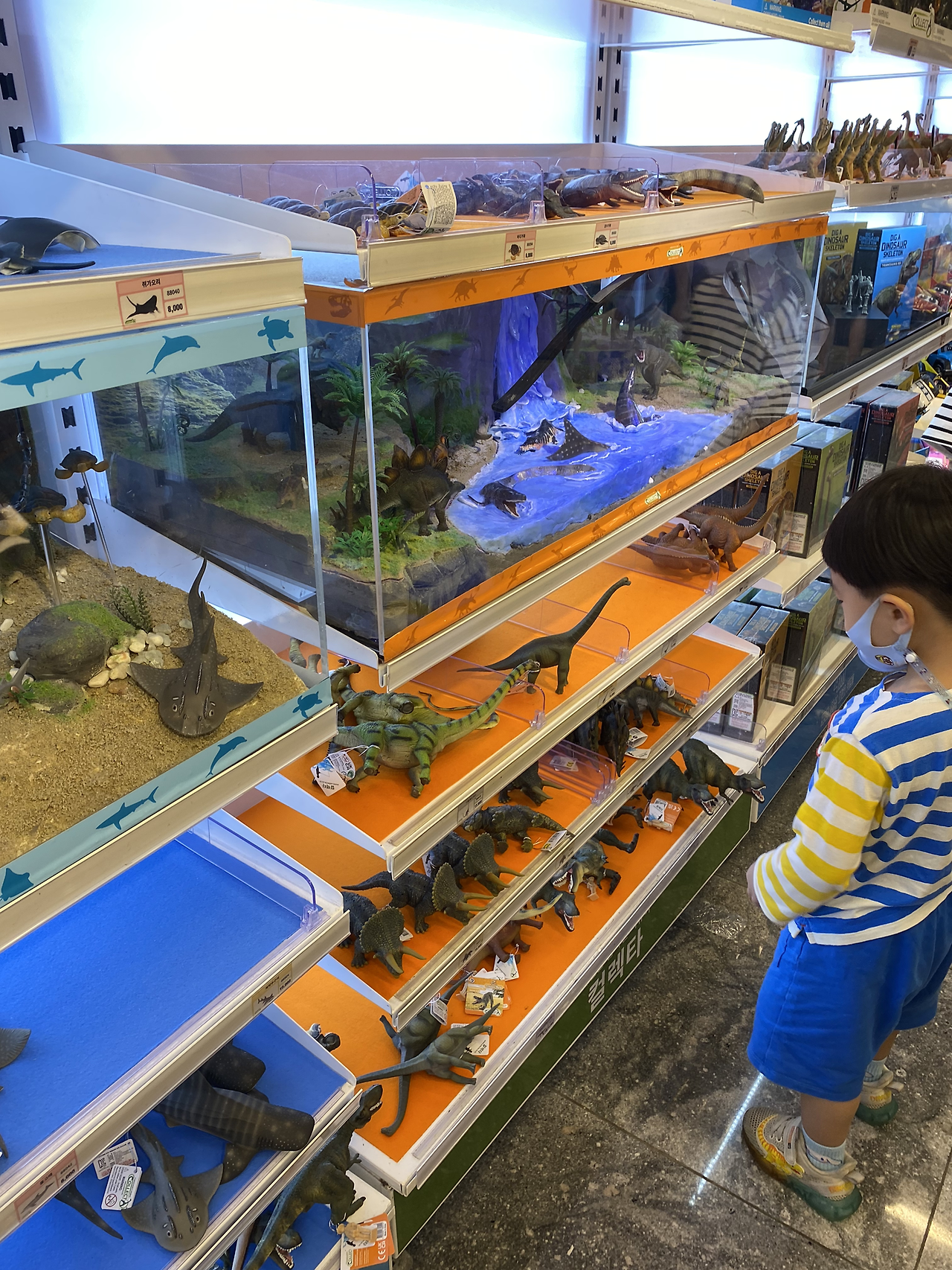 그에게 이번 여행의 1순위였다고 생각했던 '아쿠아리움'이 아니었다는 것을 알았다... 그의 제주여행의 1순위 장소는 아쿠아리움이 아니였다는 것에 충격을 받았고, 나만의 착각이었다. 그 생각에 힘을 세워주었던 연유를 굳이 꼽자면, 아이가 아쿠아리움을 다 돌아보고 기념품숍에 들렀을 때 바다 동물이 아닌 공룡 화석 발굴 키트를 사달라고 졸랐을 때였다. 아쿠아리움과 관련된 바다 동물의 굿즈 상품을 세 번 이상 권했으나, 그는 끝까지 자신의 고집을 관철시키며 원하는 것을 얻었다. 형아들이 놀 수 있는 8세 이상의 장난감이라고 설명해도 그는 끝까지 그 상품을 원했다.(대단한 똥고집!)