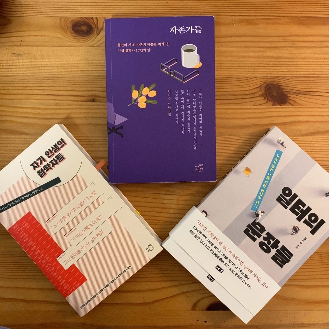 그럼에도 3년 간 아이와 동행한 출근길은 여전히 매일의 숙제거리다. 그 와중에 나의 마음을 건드린 책이 있었다. 김지수 기자님의 <일터의 문장들>. 그녀의 세 번째 책이 세상에 나왔던 것이다. <자기 인생의 철학자들>, <자존가들>을 잇는 인터뷰집인 이 책은 다른 책들과 달리 더 오랫동안 내 눈길을 사로잡은 '일터'라는 단어들로 인해 어떻게든 구입해서 읽어야만 하는 책이었다.