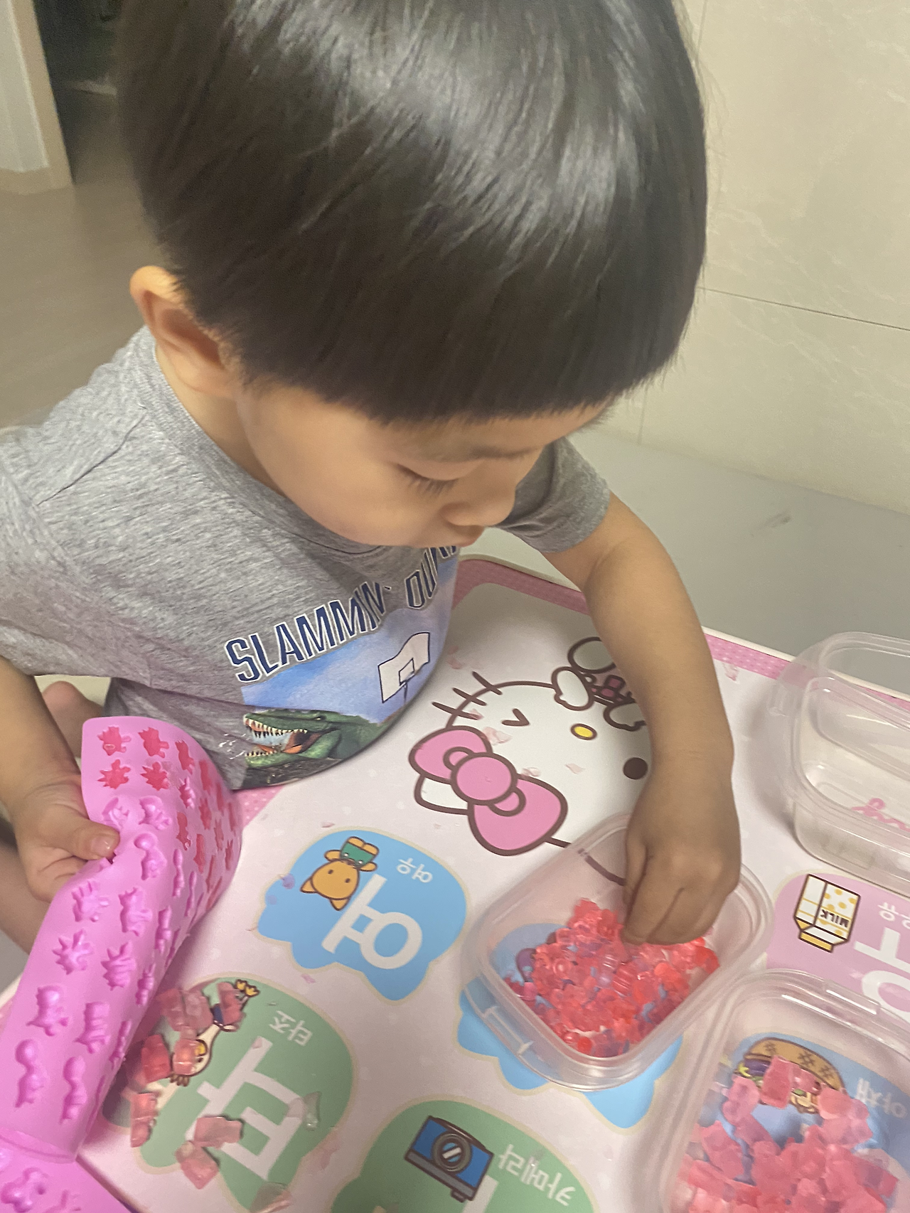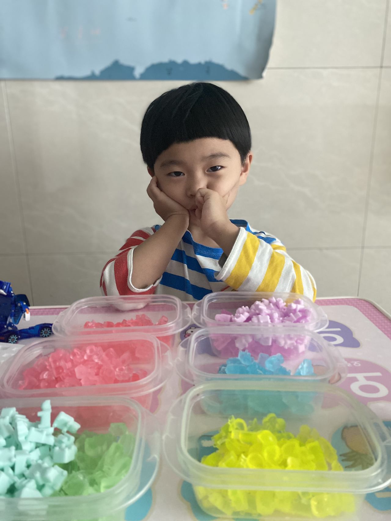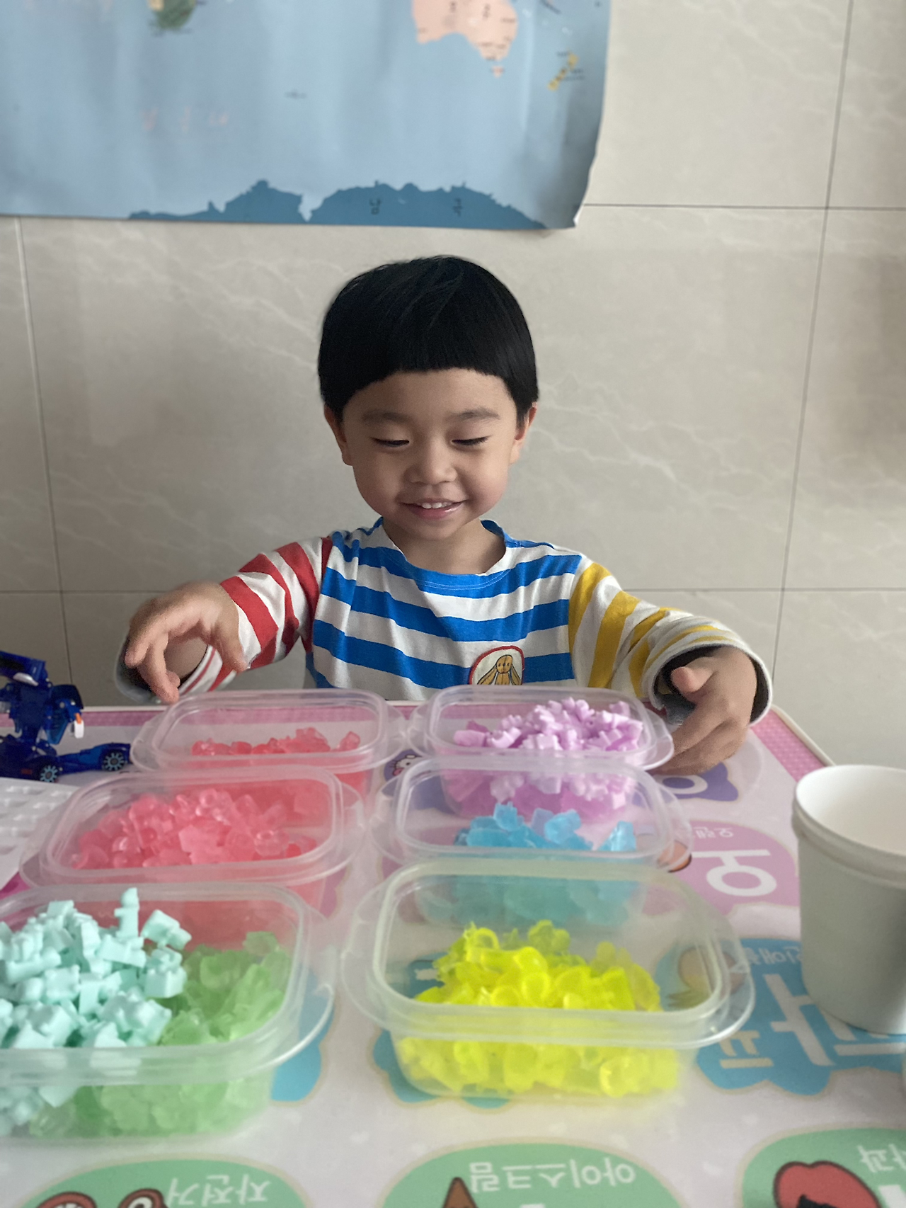 곰젤리와 닮은 곰젤리 모양의 비누를 제작할 수 있어서 여러 모형을 사고 아이와 함께 만들었다. 공룡, 과일 모형까지. 만들다 보니 내가 주체가 되어 가내수공업을 하고 있었다는… 반 친구(14명)들과 담임 선생님들께 드리려고 했는데, 작년에 같은 반 친구들 이름까지 다 소환하는 아이를 보며 쓴웃음을 지었다. 친구를 정말 좋아하는 꼬마.