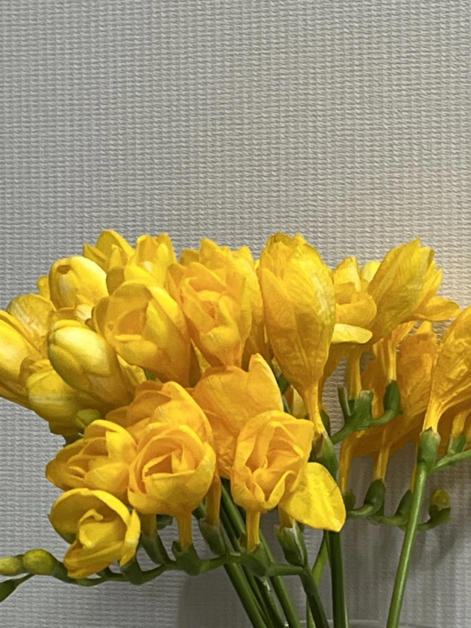 며칠 전 프리지어를 사 왔는데, 서재 방에 두기에 너무나 향긋하여 식탁에서 그 향기를 맡고 싶어 자리를 옮겼다. 만발한 후레지아. 5천 원의 행복. 덧붙여 오늘 찐하게 놀이터에서 놀았던 아이의 2시간. 4월을 대표하는 색은 노란색이다.