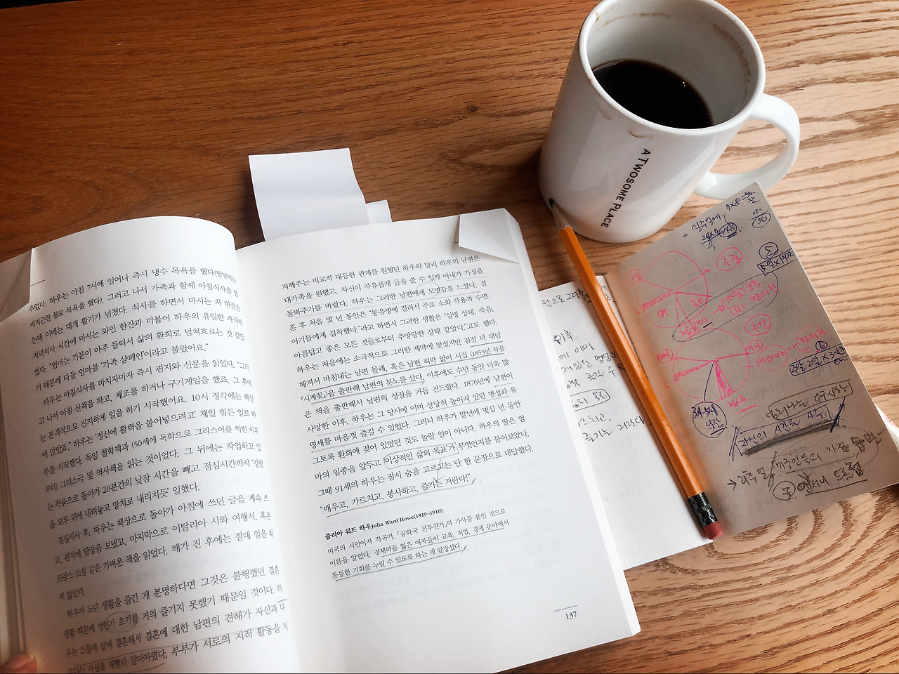 그래서 시간을 보다 효율적으로 써야 하는 고민이 올해 진지해졌다. 하루 중 내가 나를 위해 쓸 수 있는 시간은 오로지 아이의 기상 전인 6~8시. 밤잠자는 밤 10시 이후에 내가 깨서 내 생활을 가지면 다음날 잠이 부족하여 피로감이 배로 커지니 패스. 그리고 업무시간 내 점심시간(12~1시)은 짬을 낼 수 있지만, 한의원을 가거나 운동가는 시간이라 '개인 시간'에 포함시키지 않기로 했다.