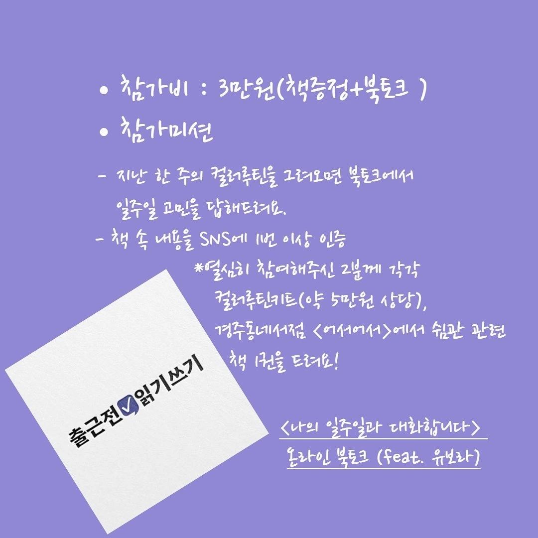 •참가비용 : 3만 원 (책 1권 증정 + 저자 온라인 북토크)