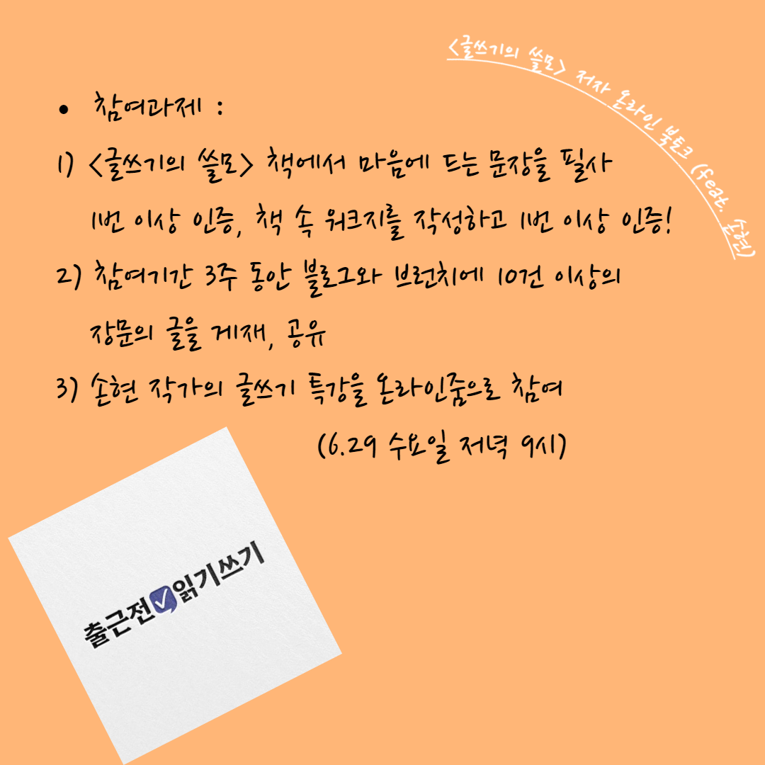 3) 손현 작가의 글쓰기 특강을 온라인으로 참여 (6.29 수, 저녁 9시)