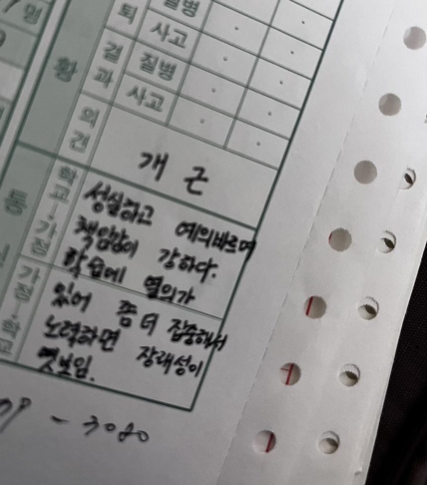 그 시간의 여정에서 가장 인상 깊었던 기록물은 중학교 1~3학년 성적표와 고등학교 때 만든 가족신문이었다. 숫자들로 가득 찬 성적표에 선생님의 짧은 편지도 있었다. 미쳐 그때는 유심히 보지 못했던... 그 성적표를 통해 원하는 고등학교에 진학하기 위해 애썼던 나의 시간도 복기되었다. 고3 수능을 봤을 때보다 더 맹렬히 공부했던 그 시기. 그 기록물을 통해 공부는 '습관'임을 알아챘다. 하고 싶을 때 에너지를 모으는 일이 아닌 매일의 습관이 모여 서서히 결과를 낼 수 있는 끈기의 산물.그땐 왜 몰랐을까.