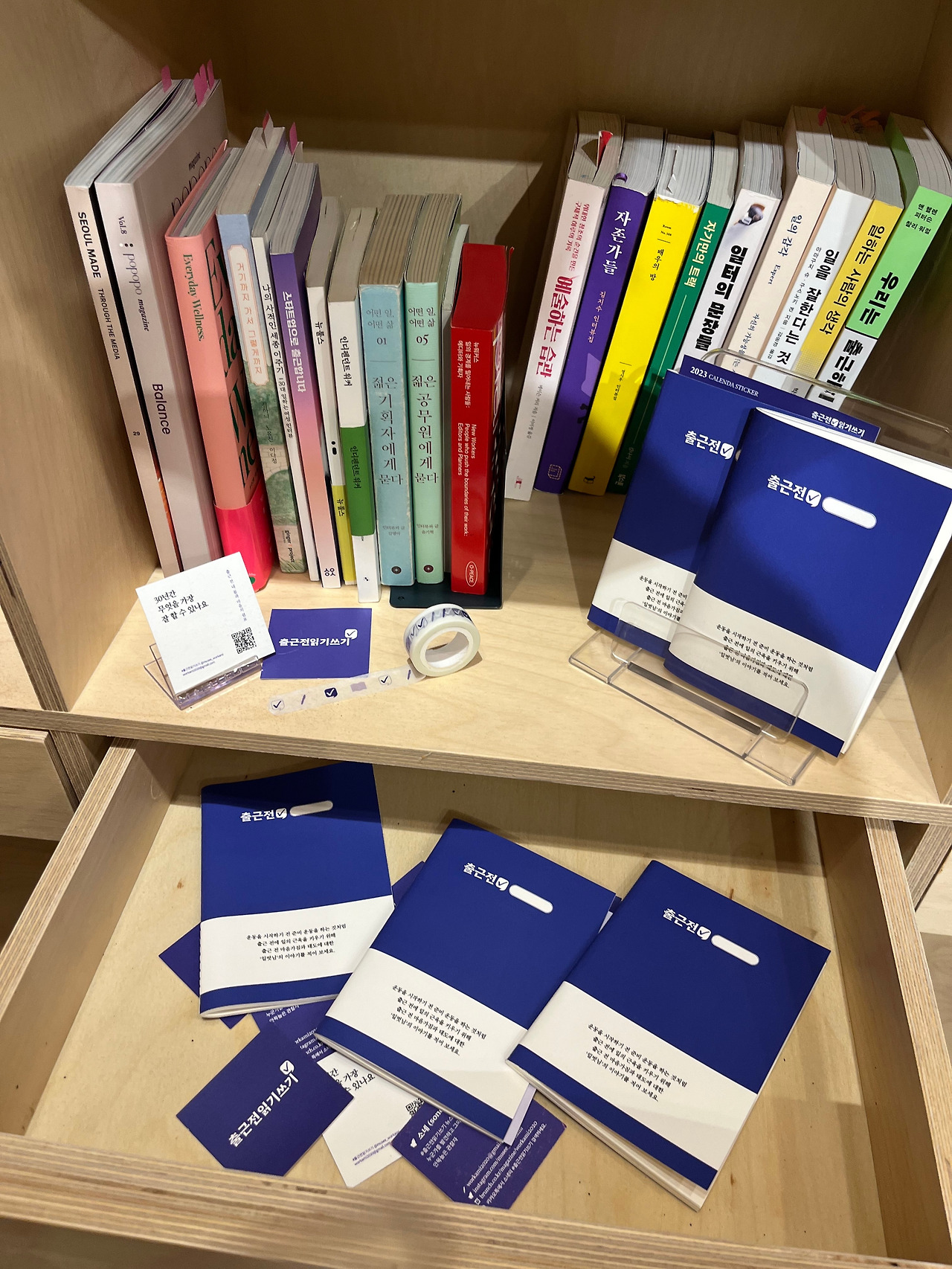 더 나아가 전주 커뮤니티 공간(경원동#)에 '소장한 책'을 선보이게 되었습니다. 제 글을 기고했던 매거진이나 제 인터뷰가 실린 책도 있습니다. 출근전읽기쓰기 뉴스레터에서 소개한 책들 외 독자분들이 출간한 책도 선보일 예정입니다. 이 공간에서 판매하는 책은 없으나, 자체 뉴스레터 굿즈 상품을 판매하려 합니다.