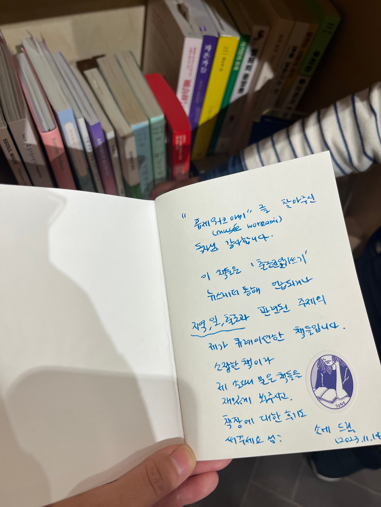 그래서 처음엔 오롯이 저의 취향대로 시작한 책이야기가 이제는 독자분들에게 맞춤형 콘텐츠로 제작하게 되었고, 온라인 모임 또한 글쓰기를 기반한 꾸준한 습관을 만들고 싶은 독자들을 위해 필사모임으로 주력했는지도 모릅니다.