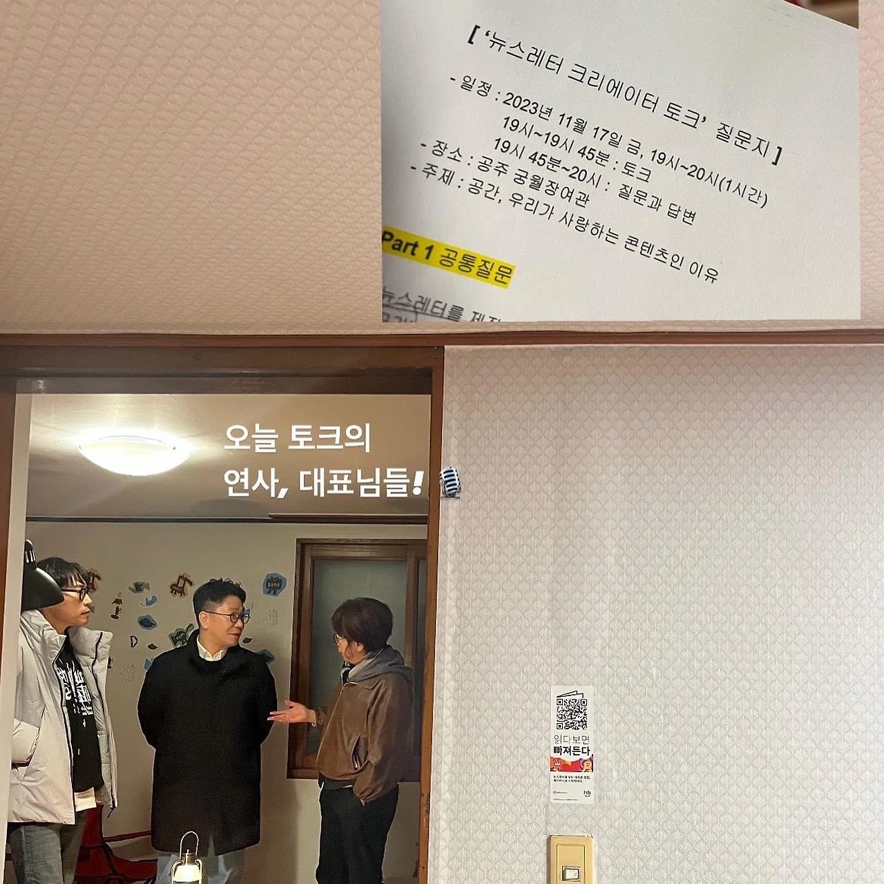 ‘공간’을 테마로 뉴스레터를 발행하는 마을호텔의 공동대표이자, 올드타운스쾃팅 행사를 총괄하는 목진태 대표, 브리크매거진을 만드는 정지연 대표, 헤이버니를 총괄하는 트위그팜 이동연 이사가 한 자리에 모여 뉴스레터에 대한 심도 있는 이야기를 나누었어요. 무엇보다 이날은 헤이버니 앱의 인기 검색어 1위에 '마을호텔'이 선정되어 기뻤던 날이었죠.