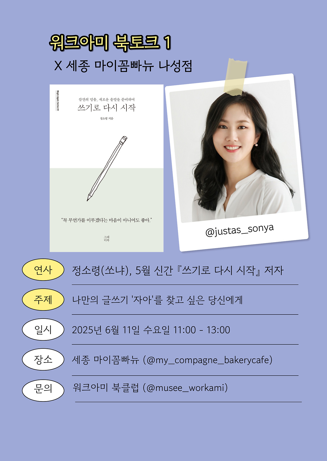 6.11<워크아미> 북토크 1기 : 정소령 작가의 <<쓰기로 다시 시작>