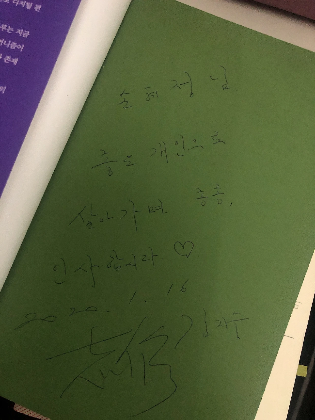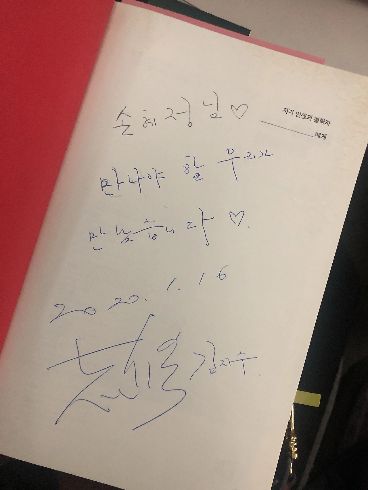그런 생각을 하던 찰나, 2020년 1월 16일 서른여섯 번째 생일날. 나 자신에게 평생에 잊지 못할 추억을 만들어주었다. 가족이 아닌 타인과 함께한 시간이었는데 말이다. 2019년 생일, 김지수 기자의 첫 번째 책 <자기 인생의 철학자들>을 친구로부터 선물을 받았다. 조선비즈에서 인터뷰 연재기획 기사로 잘 알려진 분으로 평소 인터뷰에 관심이 많고 존경했던 분이라 가장 읽고 싶은 책이었다. 마침 올해 생일날 그분을 만났다. 2시간 동안, 인터뷰이 자격으로.