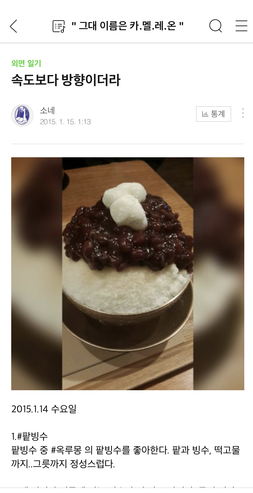 팥빙수 중 #옥루몽의 팥빙수를 좋아한다. 팥과 빙수, 떡고물까지.. 그릇까지 정성스럽다. 근데 역시나 여름에 먹는 빙수가 더 달고 맛있다. 특히 지난 주말에 동생과 먹다만 이 빙수보다 10년 지기 쏜과 먹던 그 여름 빙수의 맛을 잊을 수 없었다. 기나긴 수다도 한 몫했겠지.. 이달 나의 16일, 너의 19일. 얼마 남지 않은 우리 생일을 미리 축하하고 지난 2년간 했던 합동 축하.. 올해도 해야지.
