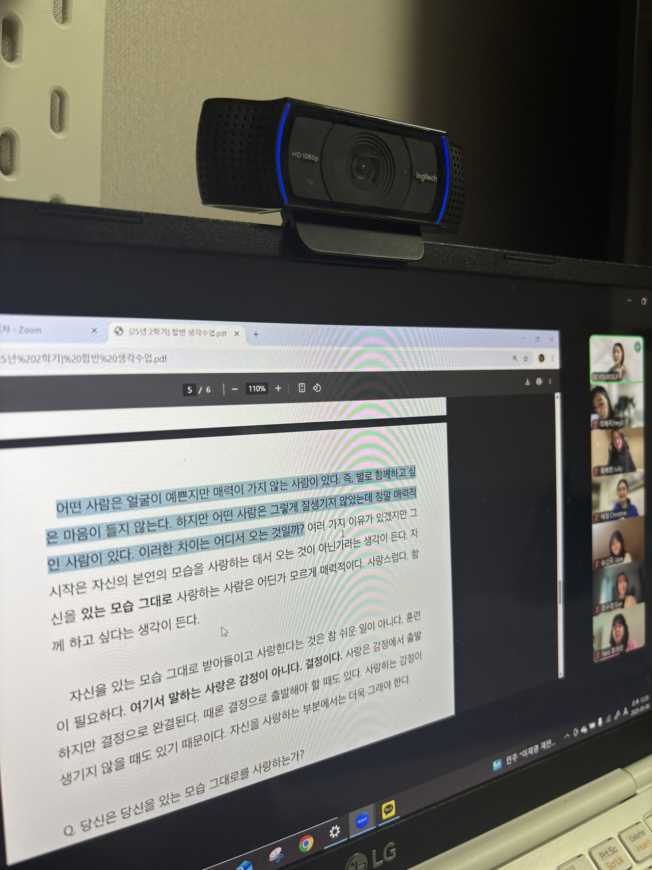 나는 생각수업을 하며 깨달았다. 내가 결혼하고 해 보려던 일들이 ‘육아를 하며 하기 쉬운 일’이었고 영어공부를 하려던 이유도 ‘아이 학교가 이중언어를 쓰니까’‘남편 안식년 때문에’ 였다는 것을. 부단히 노력한 모든 이유에 정작 나 자신은 빠져있었던 것이다.
