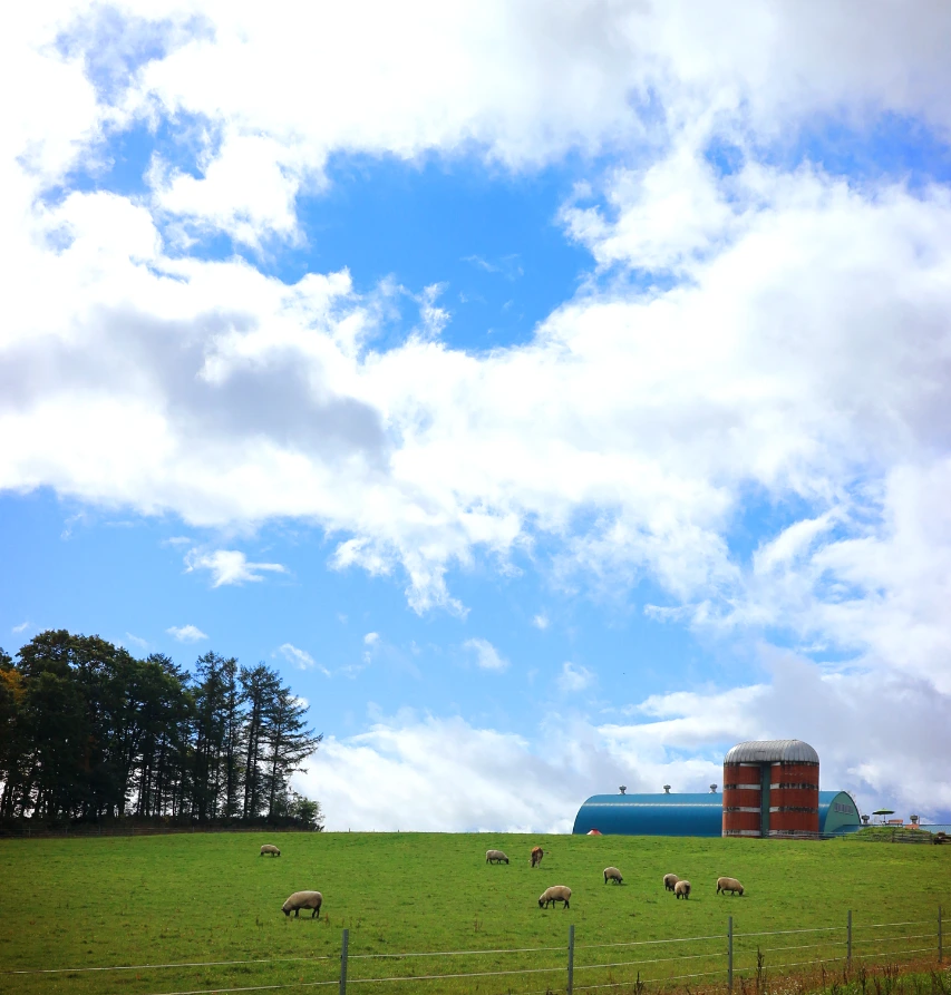 <홋카이도 비에이, 양들이 평화롭게 노닐고 있다>
