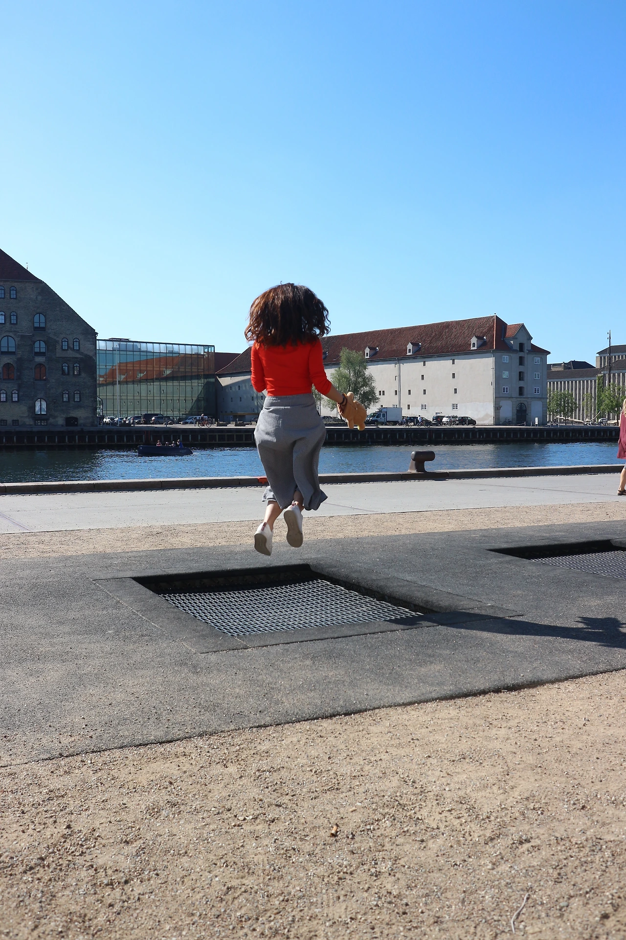 비닐봉지를 든 반대편 팔에 내 몸을 맡기고 엄마와 함께 집으로 나란히 걸어가는 길엔 한없이 바닥을 통통거리는 이상한 기분을 계속 느끼고는 했다. 어른이 되어서는 트램펄린을 탈 일이 없었지만 코펜하겐의 강가에 설치되어 있는 이 엄청난 놀이기구를 보고는 얼마나 신나서 탔는지 모른다. 바닥에 발이 꺼지는 느낌을 느끼면서 말이다.