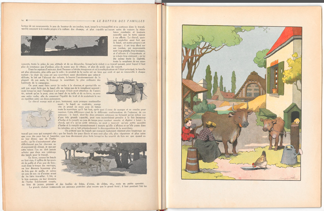 개인적으로 가장 감동을 느낀 벵자맹 라비에의 동물 일러스트는 1913년 발표한 지식책 <Le Buffon de Benjamin Rabier>에 실린 것들이다. 1749년부터 1789년까지 약 40년에 걸쳐 36권짜리로 시리즈물로 출간되었던 동물도감 <Histoire Naturelle>을 20세기 초반 감성에 맞게 재해석한 프로젝트로 그는 이 책에서 총 900여 점의 동물 일러스트를 선보인다.