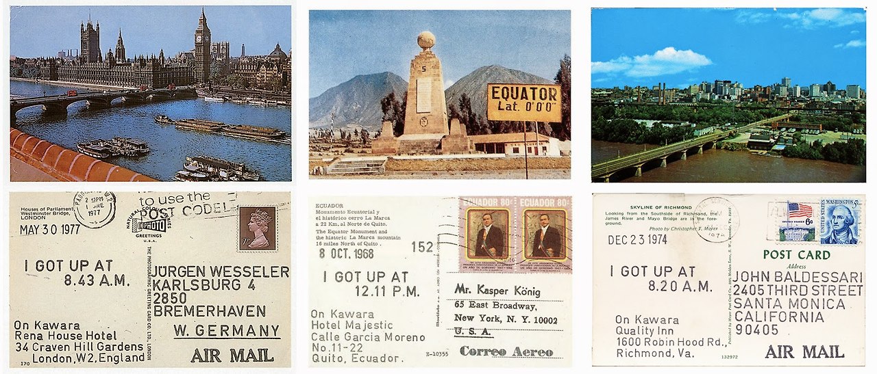 동시에 매일 아침 자신이 일어난 시각을 기록해 지인들에게 엽서를 보내고(1968-1979), 매일 신문을 스크랩하고(1966-1995), ‘나는 아직 생존해 있다’는 문장을 전보로 보냈다(1970-2000). 이런 작품 활동 이외의 인터뷰, 사진 촬영은 모두 거부했고, 심지어 자신의 전시회 행사에도 드물게 참석했다.