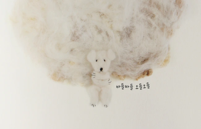 책의 후반부는 재봉사와 쿵쿵이는 깎아낸 털뭉치를 실타래로 만들어서 예쁘게 물들여 털실을 만들고 숲 속 친구들을 위해 뜨개질을 하는 장면들이 이어집니다. 마지막 장에서 쿵쿵이는 다시 마음 기댈 곳을 찾았다는 안도감과 흥분감에 잠도 잊은 채 뜨개질에 몰입합니다. 활짝 미소 지으면서요.