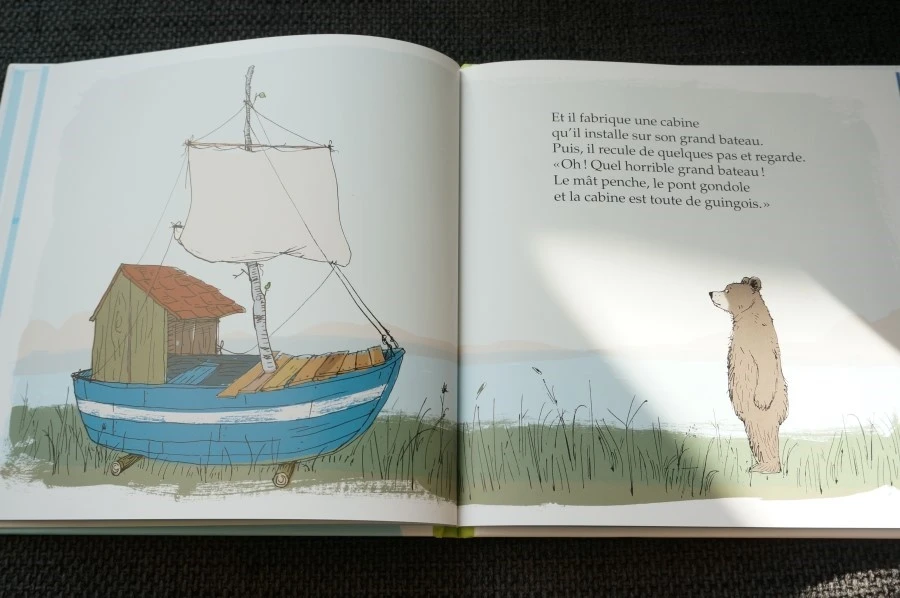 호수에서 작은 배 타는 것을 너무나 좋아하던 꼬마 곰이 성장하며 몸집이 커져 정이 든 작은 배를 떠나야만 하는 순간을 그려낸 책입니다. 변화가 두려워 억지로 작은 배에 몸을 욱여넣는 대신 옛것과 이별하고 변화를 선언하는 용기에 대한 작품이었습니다.