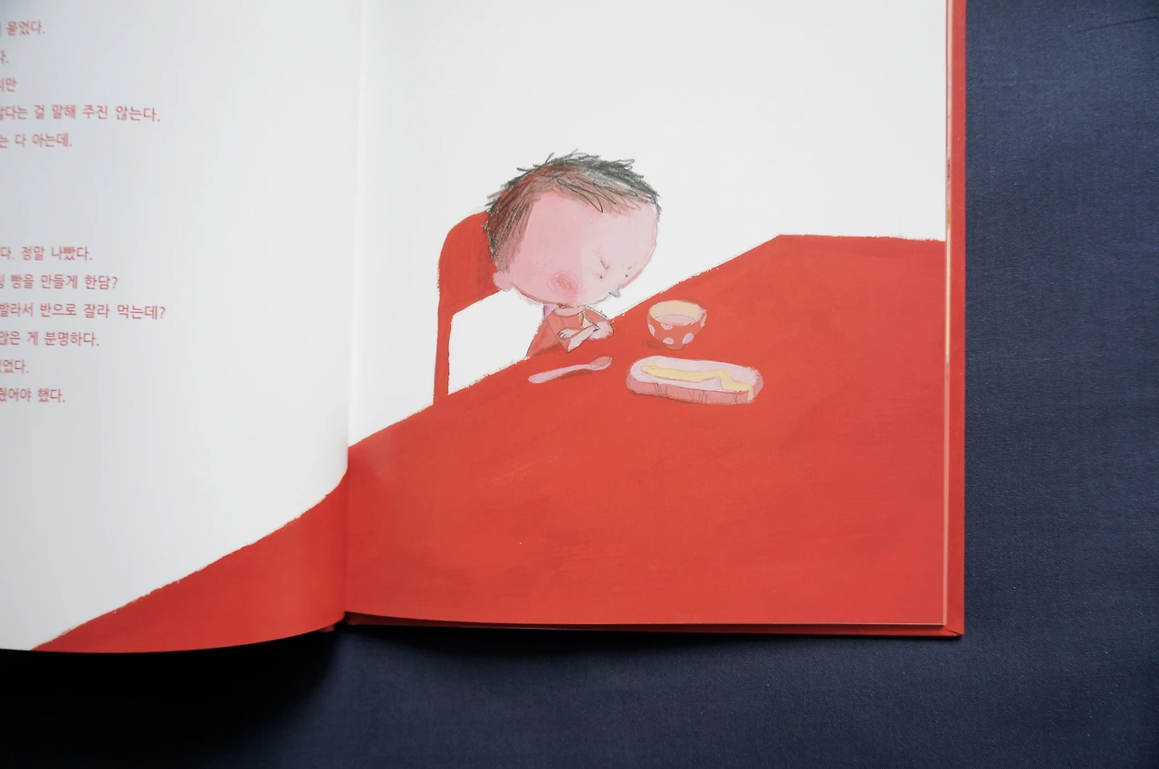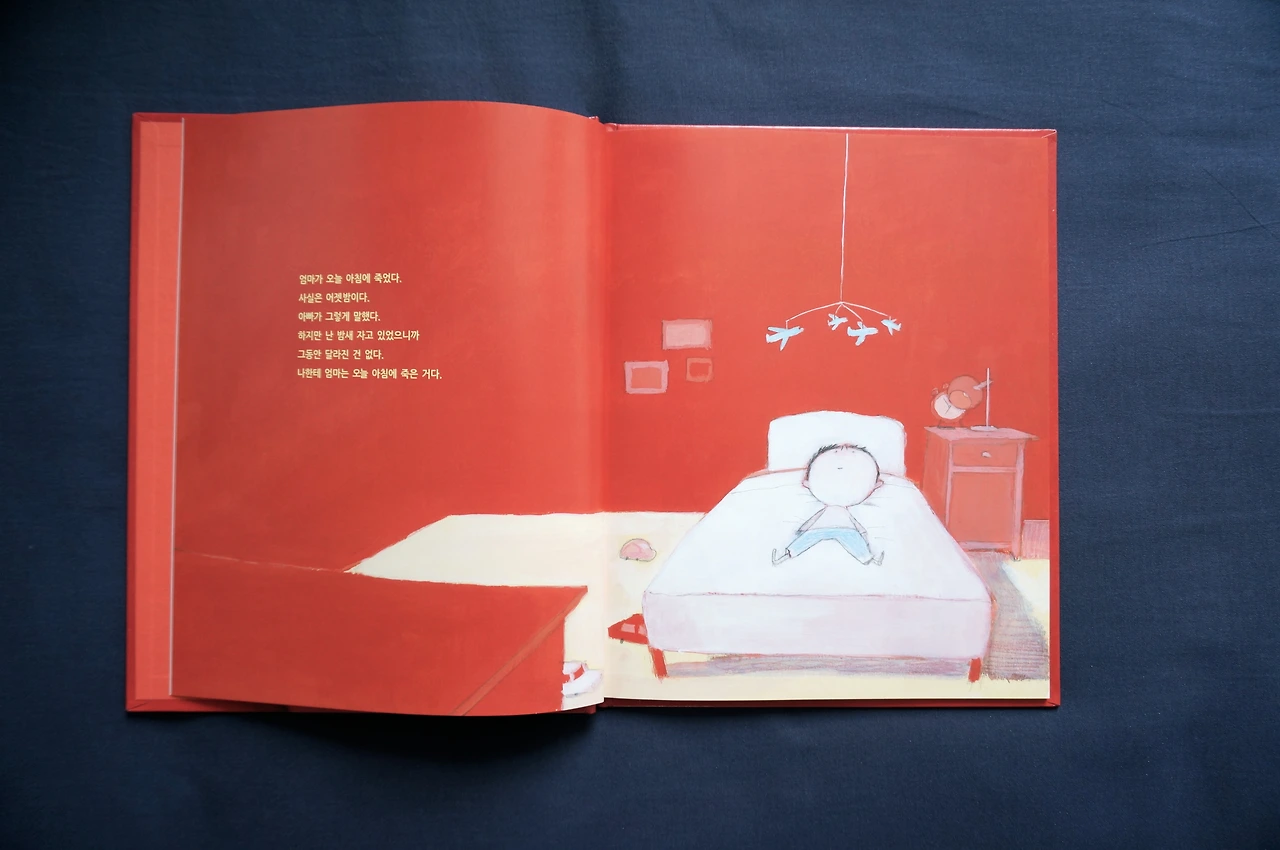 함부로 위로조차 건네기 힘든 거대한 상실을 맞닥뜨린 작은 아이의 내면을 은유하듯 그림책 속 아이의 집이 온통 빨갛게 그려져 있습니다. 상처의 색, 고통의 물감 빨강.