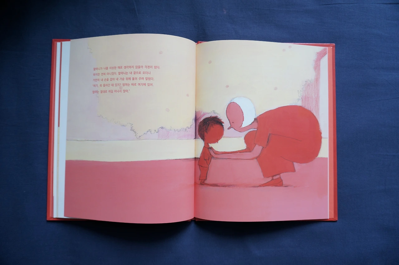 딱지가 앉기 기다렸다 떼어내는 방식으로 ‘엄마를 잊는 것에 대한 공포’를 견디던 아이는 이야기 후반부 할머니의 방문을 계기로 애도의 방법을 배웁니다.