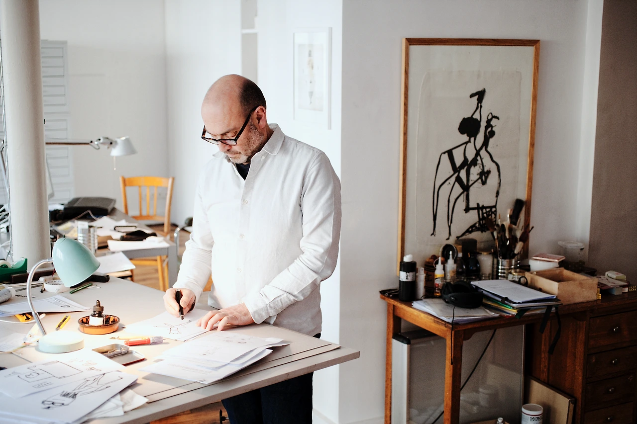 바이올리니스트가 4 가닥의 줄로 여러 음악을 표현하듯 저에겐 간결한 선이 표현의 도구였어요. 단순하게 그림을 그리기 때문에 다양한 나라를 돌며 다채로운 장르에서 활동할 수 있었던 것 같아요. 핵심만 남겨놓고 모든 것을 지워버리면 독자들이 자신의 생각을 개입시켜서 오히려 적극적으로 그림을 읽어낼 수 있지요. 사실 젊을 땐 저도 그림에 이것저것 많이 집어넣었어요. 스스로 안심하려고 꾸미고 뭔가를 계속 더했죠. 그러나 그런 장식들이 소모적이라는 걸 깨닫고 단순성을 추구하는 그림을 그리게 되었어요.