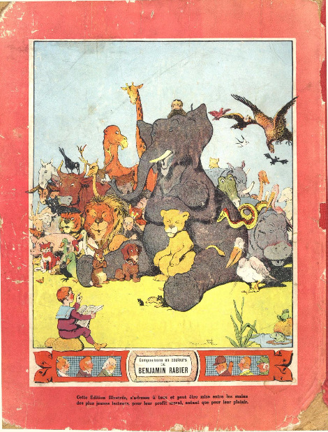 1923년에 <제데옹 Gédéon>이라는 오리가 주인공으로 등장하는 그림책을 발표한 벵자맹 라비에르(Benjamin Rabier)의 작업도 주목할 필요가 있다. 움직이는 동물의 움직임을 기막히게 포착해 내러티브를 만들면서 환상과 유머의 세계를 펼친 작가. 1864년생인 그의 그림 중 하나는 놀랍게도 2017년 전세계 슈퍼마켓에서 볼 수 있을 정도로 막강한 이미지 생명력을 선보인다. 프랑스의 유명 치즈 브랜드 ‘벨 치즈’ 로고에 있는 웃고 있는 젖소 그림이 그의 작품인 것. 현대의 디자인 옷을 입고 슈퍼마켓 안에 있어도 어색하지 않은 모더니티가 그의 그림 안에 있기에 가능했던 일 아닐까.