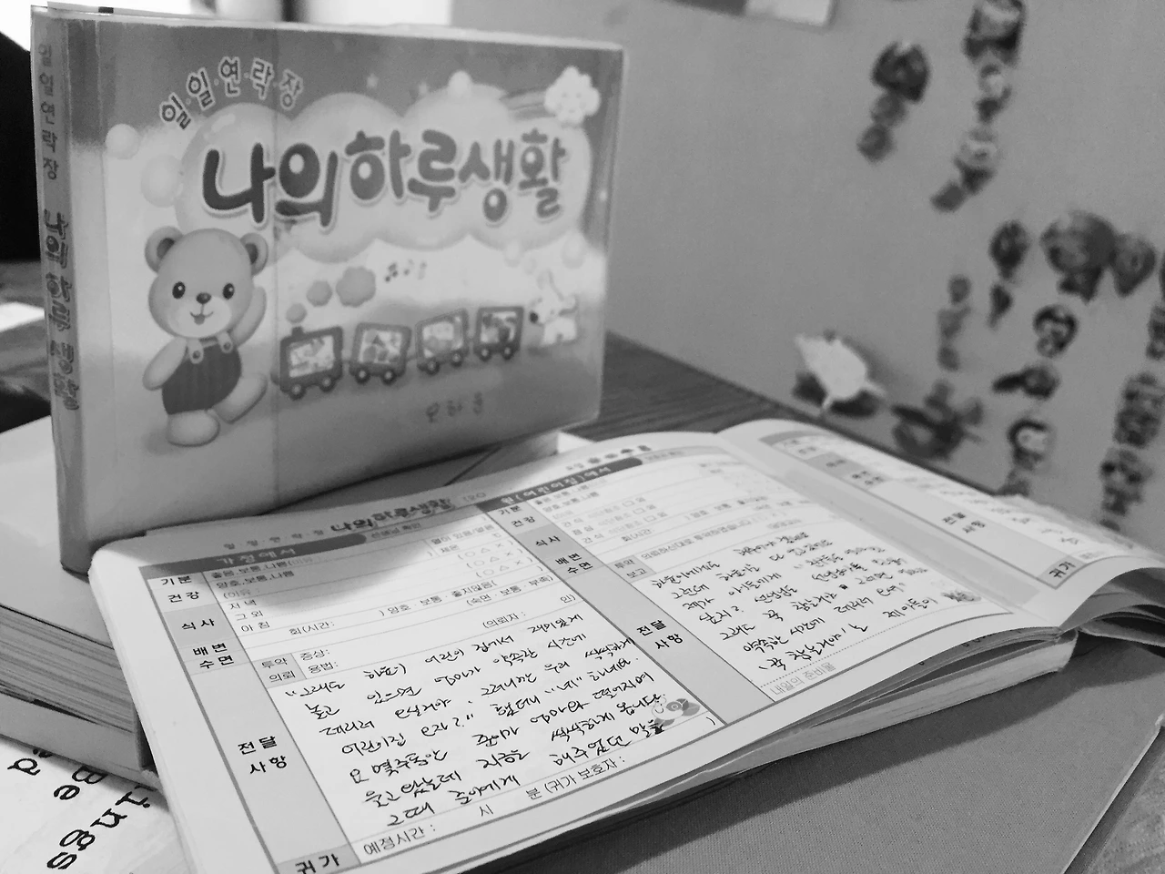 그날 밤, 어느 때보다도 아이를 더 꼭 껴안고 달래며 재웠다. 아이의 감정을 읽어주고 쓰다듬어 주어야 했으니까. 이제 고작 네 살 아이의 말이 마음에 파동을 남겼다. 엄마도 마음이 이상한 걸. 부디 시간이 잘 붙들어지길. 서로 단단해지는 시간이 되길. 아이가 잠이 들고 나서야 어린이집 가방에 있던 연락장(어린이집 수첩)을 꺼내 들었다. 이미 선생님들께는 출근 소식을 전해두었지만, 담임선생님께는 특별히 더 부탁을 드려야 할 것 같아서 짧은 글을 적어 내려갔다. 다음날, 일찍 하원을 하고 놀이터에 들렀다. 평일 중 이렇게 친구들과 노는 것도 마지막인 듯하여. 아이가 친구들과 노는 틈을 타 벤치에 앉아서 수첩을 펼치니, 무려 두 페이지에 걸쳐 담임선생님이 쓴 긴 답글이 보인다.