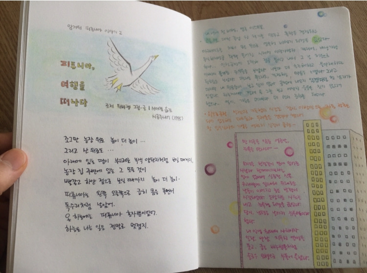 우린 언제고 집을 떠나 왔다가 다시 집으로 돌아온다. 돌아갈 곳이 있다는 것, 지친 몸과 마음을 녹일 수 있는 둥지가 있다는 것 자체가 매번 의식하지 않아서 그렇지 얼마나 다행스러운 일인지. 여행 내내 피튜니아는 가족이 떠오르지 않았지만 돌아가는 집에 가족이 기다리고 있음은 어쩐지 또 한 번 가슴이 설레고 벅찬 일일지 모르겠다.