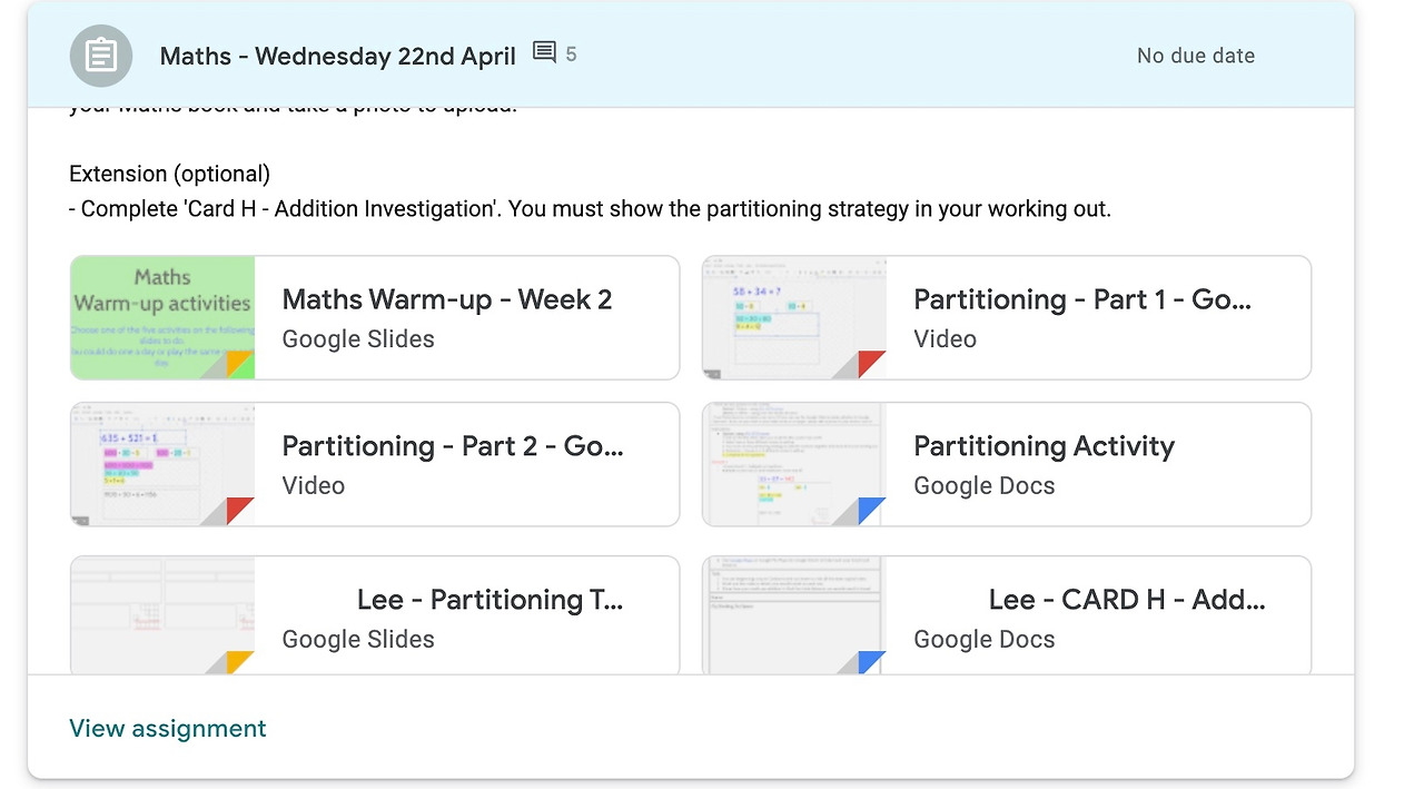 교육환경에서 아이들을 비교와 경쟁을 시키지 않도록 교육활동이 계획되고 실행된다. 예를 들면 원격 수업중에도 구글클래스룸에 제출하는 모든 과제들의 코멘트도 교사가 개별적으로 private 한 상태로 각자에게 전달한다. 다른 아이들의 결과와 성취에 무관하게 본인의 능력과 수준에 맞게 수행하고 교사는 개별 학생의 발전에 맞춰서만 교육적 성취를 얘기한다.