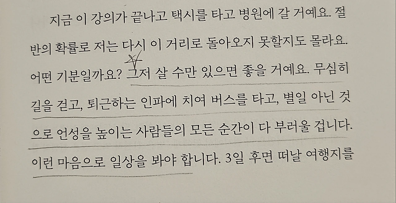 길을 걷다가 보게 된 고깃집이나 카페 안의 사람들, 소란스레 고기를 굽고 커피 한잔 앞에 두고 수다를 떠는 사람들이 그렇게 부러울 수가 없었다. 그들의 지극히 평범하고 어찌 보면 지겨웠을지도 모를 소소한 일상이 미치도록 부러웠다.