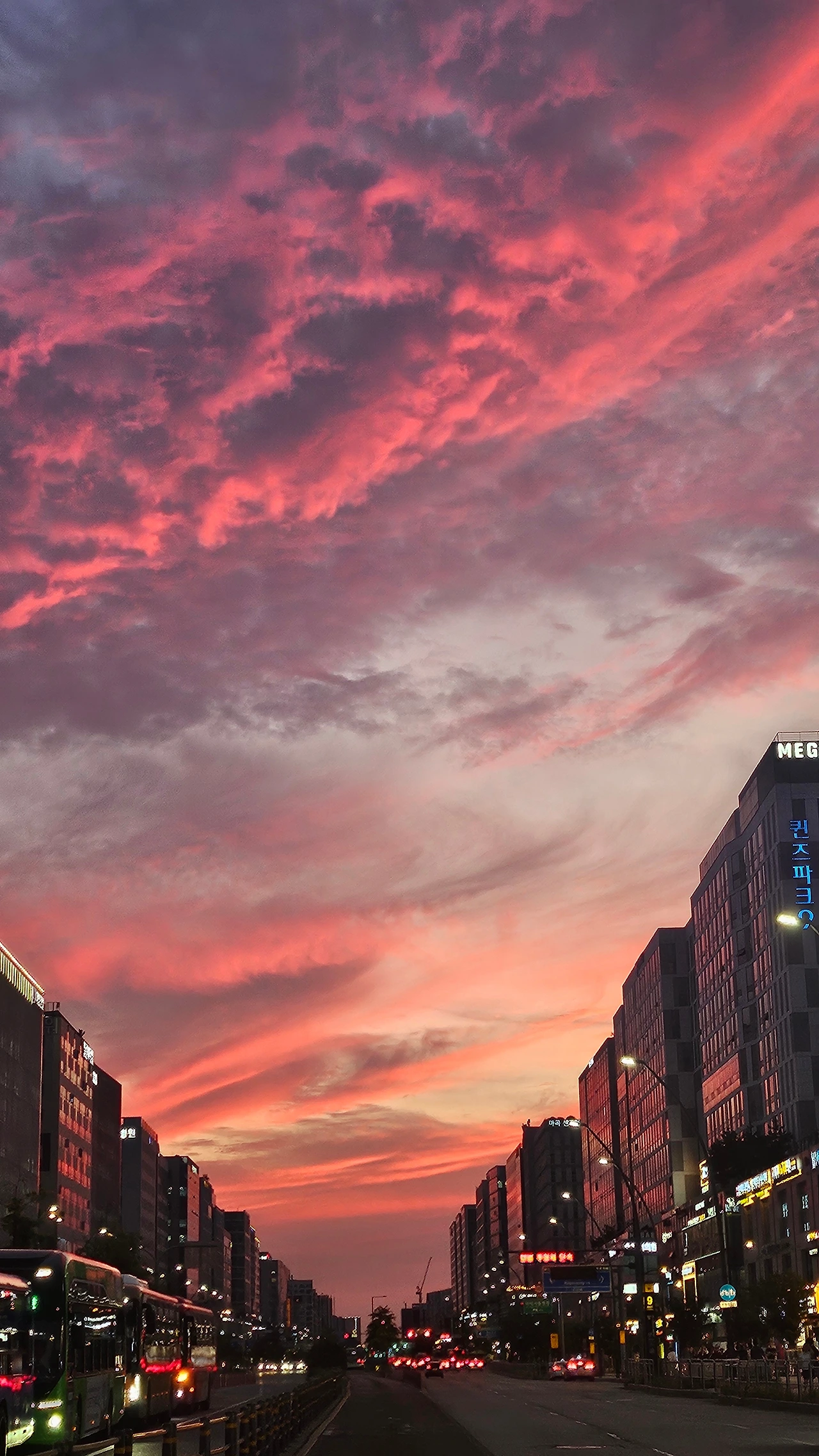 일 년에 열댓 번은 우연히 이런 말도 안 되는 멋진 노을을 만나는 날이 있다. 퍼석거리고 부대끼는 하루에 표정을 잃어갈 때쯤 이런 순간을 만나면 마음이 말랑해진다.