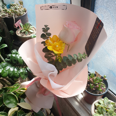 얼마 지나지 않아 나도 연분홍빛의 장미를 건네받았다. 장미의 옆에는 서비스로 넣어주신 노란 프리지어 두 송이도 함께였다. 본능적으로 그것들에 코를 갖다 대었다. 놀라울 정도로 향긋했다. 근사한 향기에 굳어있던 내 얼굴이 금세 풀어질 만큼. 예상컨대 그때의 내 표정은 앞서 나간 세 명의 남자들과 꽤 닮아있지 않았을까?