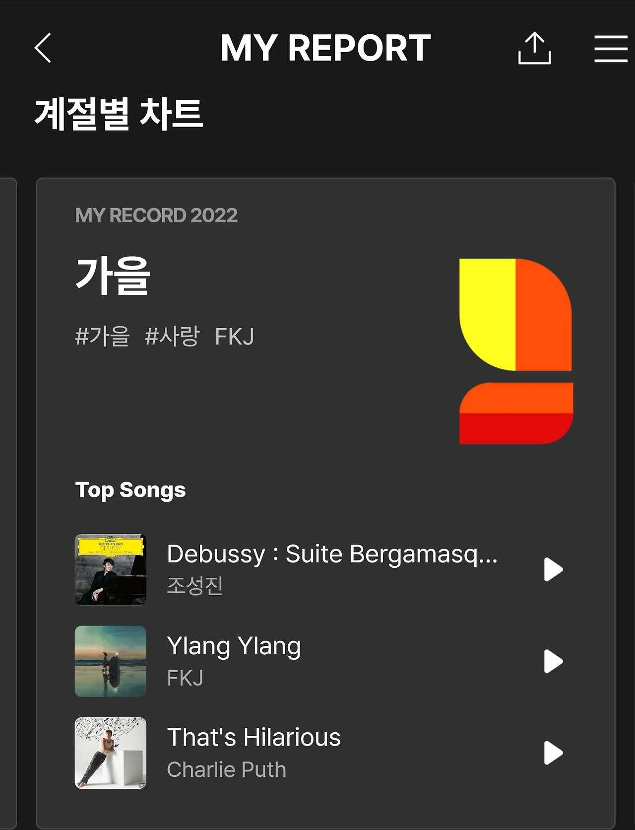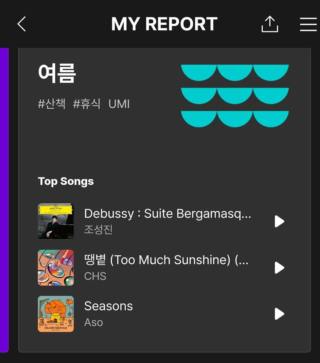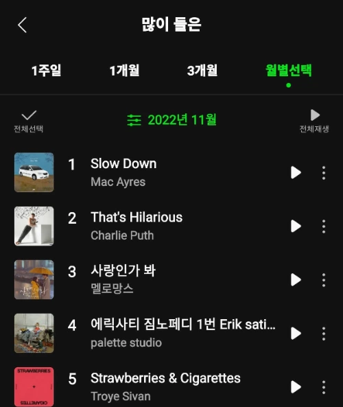 멜론에서 친절히 분석해 준 [가장 많이 들었던 곡]을 살펴보았다.