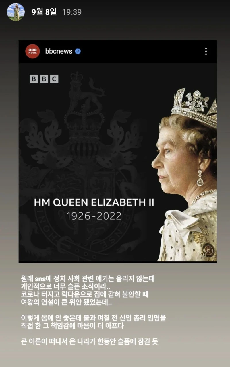 영국 국적도 아닌 외국인 노동자인 나도 여왕이 떠났다는 소식에 마음이 뒤숭숭했으니, 군주제며 지난식민국가에 대한 잘못 등을 떠나 국가의 주인인 여왕의 서거는 영국뿐 아니라 영연방 여러 국가 국민들에게 작지 않은 충격을 주었다.