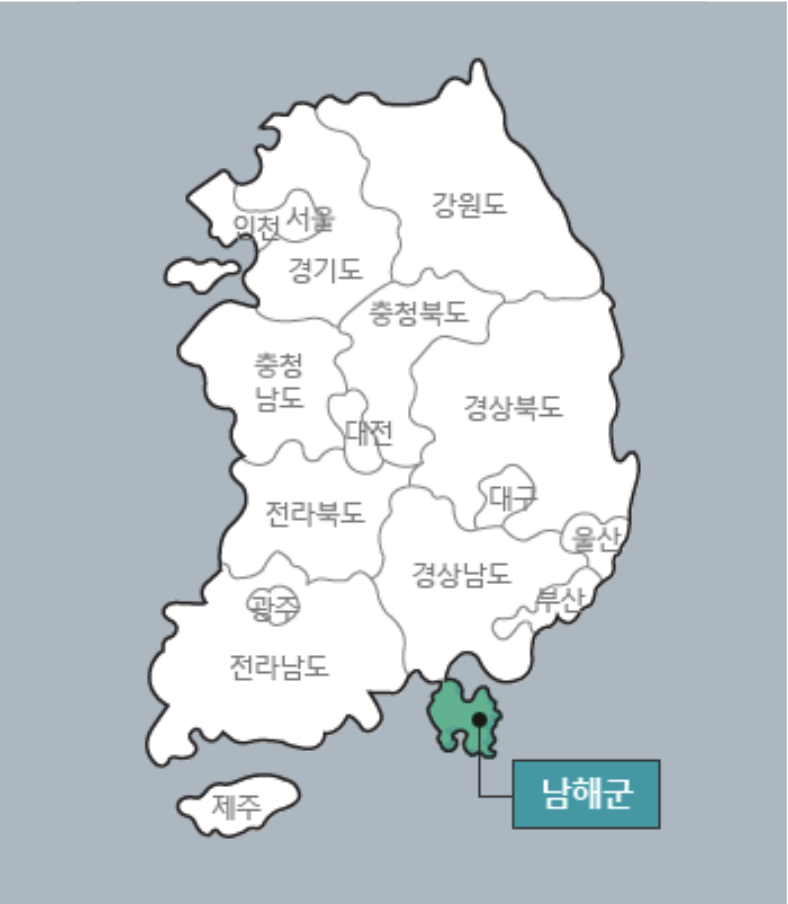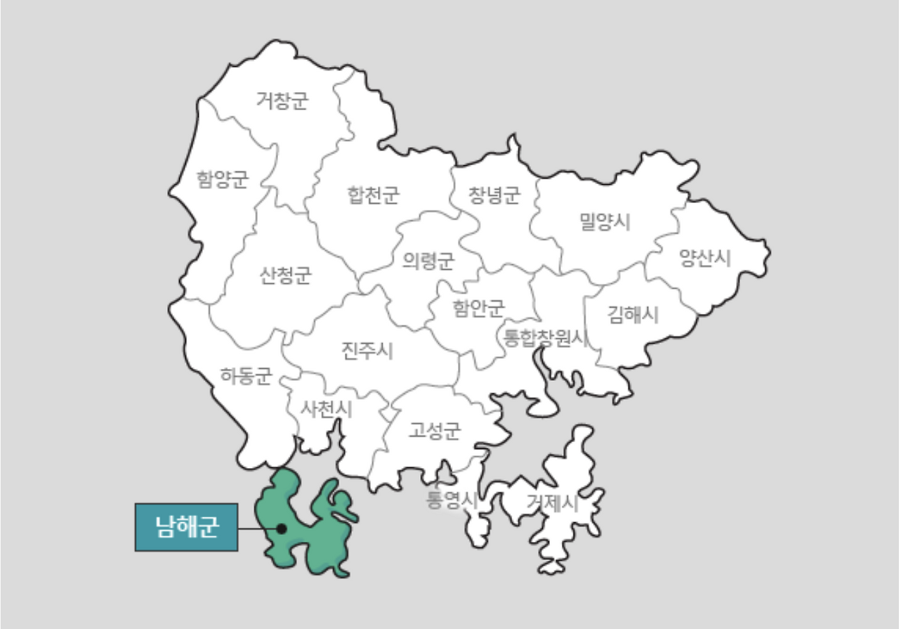경상남도 남해군은 2019년 소멸군 위험 지수 0.179로 ‘소멸 고위험 단계’에 처한 지역이다. 한편 남해군은 관광산업이 활성화된 도시이기도 하다. 은모래해변, 다랭이마을, 금산과 보리암 등의 자연 명소가 각광받고 있으며, 독일마을, 사우스케이프, 아난티, 돌창고프로젝트 등 숙박·레저·F&B 등의 관광 인프라가 갖추어져 있다. 또한 현재 남해군은 관광산업의 도약을 준비하고 있다. ‘2022년 남해 방문의 해’를 추진하고 있으며, 한국관광공사와 함께 국내 유일의 관광중심형 도시재생뉴딜사업을 추진 중이다. 이 사업을 위하여 2019년부터 2023년까지 5년간 총 200억 원의 예산이 투입될 예정이다.