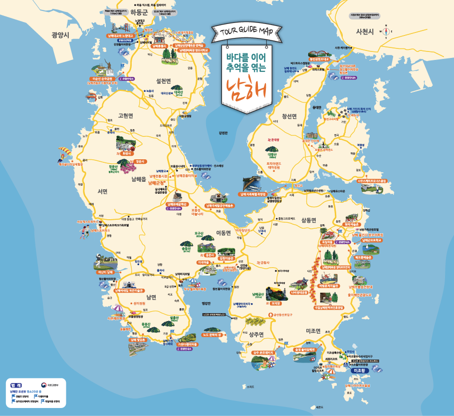 2015년과 2020년의 남해군 내 단독주택 실거래가 평균 금액과 관광지 분포 데이터를 ArcGIS를 통해 시각화하였다. 전반적으로 2015년에 비하여 2020년의 단독주택 실거래가가 높은 편이었으며, 해변가 일대 지역의 단독주택 실거래가가 높은 것으로 나타났다. 삼동면 물건리에는 남해 유명 관광지 중 하나인 독일마을이 위치해있다. 미조면 미조리에는 몽돌해변, 설리해수욕장, 미조항, 송정솔바람해변 등이 있으며, 상주면 상주리는 미조면 미조리와 맞닿아있고 은모래해변 등이 있다.