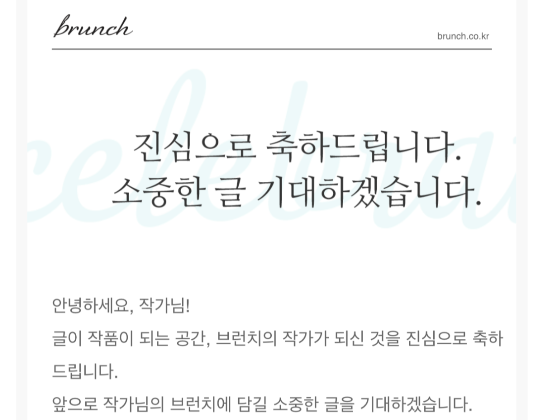 브런치라는 플랫폼은 이미 알고 있었지만 이 곳에 글을 쓰기 위해서는 별도의 '승인'을 받아야 하며, 승인 후 '작가'라는 호칭이 주어진다는 것을 한 블로그 글을 읽고 나서야 알게 됐다. 아무나 글을 쓸 수 없다는 점과 '작가'라는 호칭이 주는 매력은 나에게 굉장했고 이 새로운 사실을 알게 된 지 20분 만에 끄적끄적 브런치 작가를 신청했다. 기존에 운영하던 블로그에서 그나마 브런치다운(?) 글을 골라 첨부하며 '그냥 한번 해보지 뭐!' 하는 가벼움 반과 '그래도 혹시나?' 하는 진지함 반으로 작가 신청을 마쳤다.