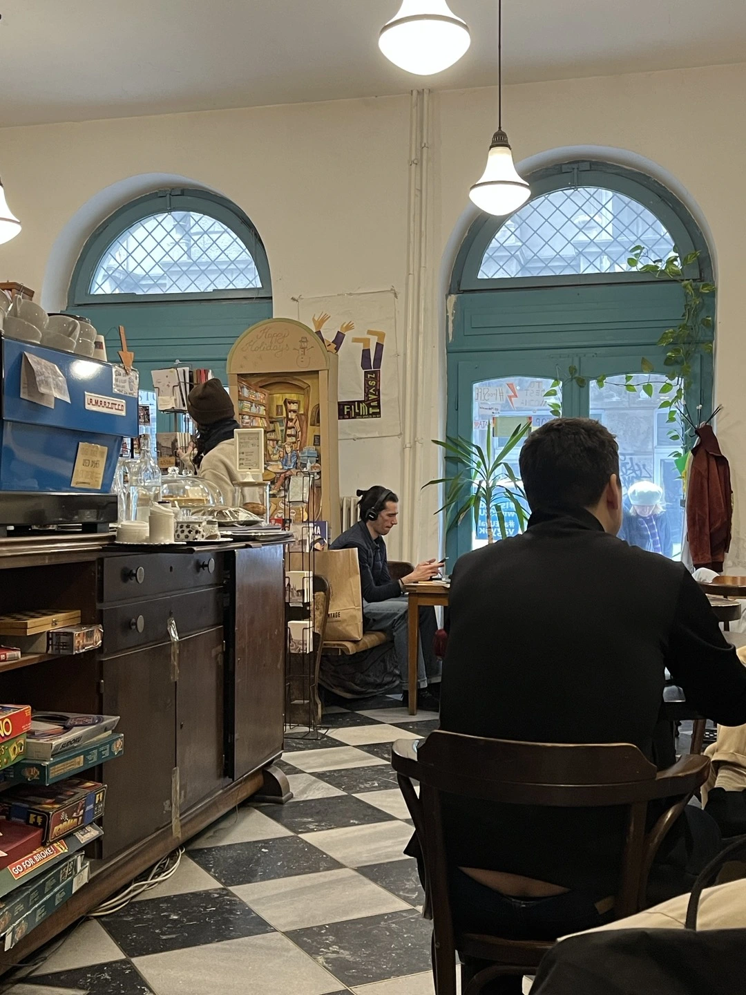 두 번째는 작지만, 한껏 왁자지껄했던 카페에서의 시간이다. 수없이 찾아간 카페에서의 선명한 기억이라니, 새삼스러울 수 있다. 문을 열고 들어서자마자 시선이 간 곳은 두 청년이었다. 그들은 아담한 간이 테이블을 둘 사이에 두고 보드게임에 진지한 눈빛을 공유하고 있었다. 시끌벅적한 소음은 그들의 온정신이 카드에 사로잡히기에 전혀 문제 되지 않았다. 마치 그들 주위로 방음벽이 존재하는 것처럼 보였고, 여러 소음은 방음벽을 통해 과감하게 튕겨 나가고 있었다. '크리스마스 연휴, 활기찬 대낮, 대학생쯤 보이는 두 청년', 세 조합에서 이루어지는 그들의 보드게임 리그가 꽤 인상적이었다. 대낮 크리스마스 축제로 열기가 뜨거운 밖에서 맥주를 벌컥벌컥 마시기 바쁜 바깥과 대조되었다. 뿐만 아니라, 보드게임 카페가 아니고서는 친구들과 모여 앉아 카드라는 걸 주고받아 본 적 없는 내게 신선함을 안겨주었다. 하물며, 한국 카페에서 보드게임을 즐기는 사람들을 본 적이 없었다. 대신, 모니터를 두들기는 사람과 수다를 나누는 사람, 사진을 찍고 찍히며 예쁜 사진을 골라주는 사람 등의 부류가 존재했다. 사람들의 대화 내용, 얼굴, 행동보다 또렷이 스쳐 지나가는 것은 어디에나 껴있는 핸드폰과의 대화였다. 책상 위든, 우리의 손이든, 눈이든 늘 껴있는 무시무시한 핸드폰.
