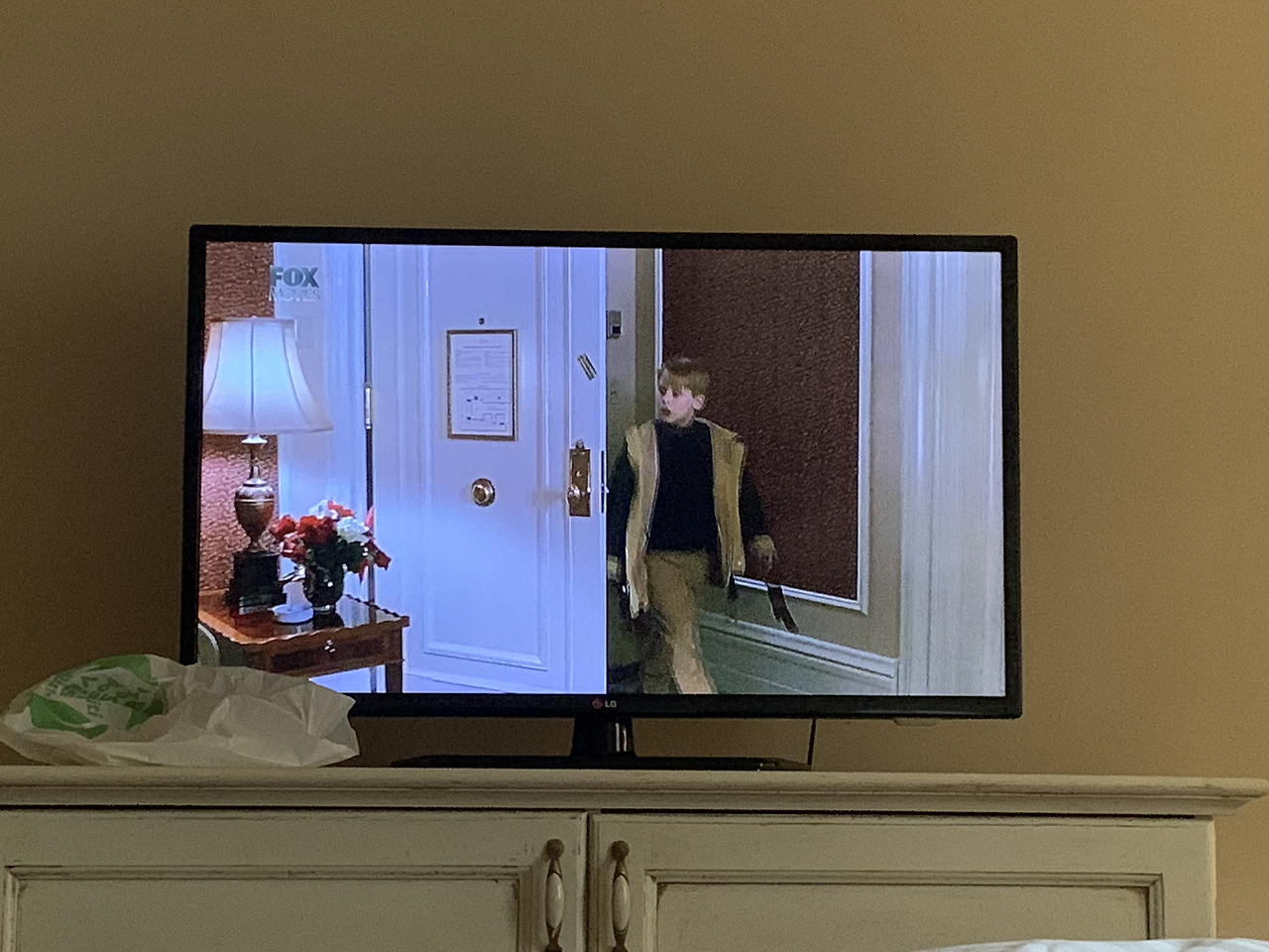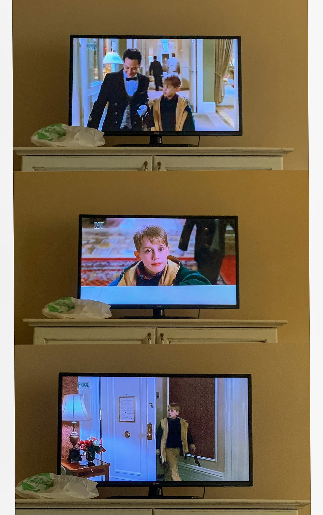 그러던 때, 저번 쌀국수 한 그릇을 통해 얻은 깨달음을 몸소 실천하고자 북적이는 베오그라드 한복판의 숙소에서 침대 위에 빈둥거리는 시간을 누리고 있었다. 전날 밤부터 그 넓은 방에 홀로 있으니 꽤나 적적해서 잠깐 틀어봤던 티비를 계속해서 틀어 놓았다. 늘 외국에서 보는 프로그램은 재미없어서 티비 볼 생각을 전혀 안 하고 있었는데, 그날은 대부분의 채널에서 꽤 신선한 미국 시트콤을 계속 방영해주고 있었다. 덕분에 영어 듣기 공부도 하고, 한국과는 다른 새로운 전개 방식과 낯선 유머 코드 등을 들으면서 적적한 밤을 흘러 보냈고, 덜 외롭게 아침을 맞이할 수 있었다. ‘아침에는 뭘 하려나?’ 하며 자연스럽게 리모컨을 눌러봤는데 어제 방송했던 그 채널에서 ‘나홀로 집에’를 보여주고 있었다. 전혀 생각지도 못했던 익숙한 케빈이 화면 속에 등장하자 반가운 마음이 솟구쳤다. 때마침 쉼이 필요했지만 지나치게 조용한 방 안에서 혼자 있게 되면 느끼는 약간의 외로움은 싫어 침대 밖을 나가야 하나 고민하던 찰나에(노란빛의 숙소 조명도 한 몫 한 거 같다.), 케빈이 등장했던 것이다.