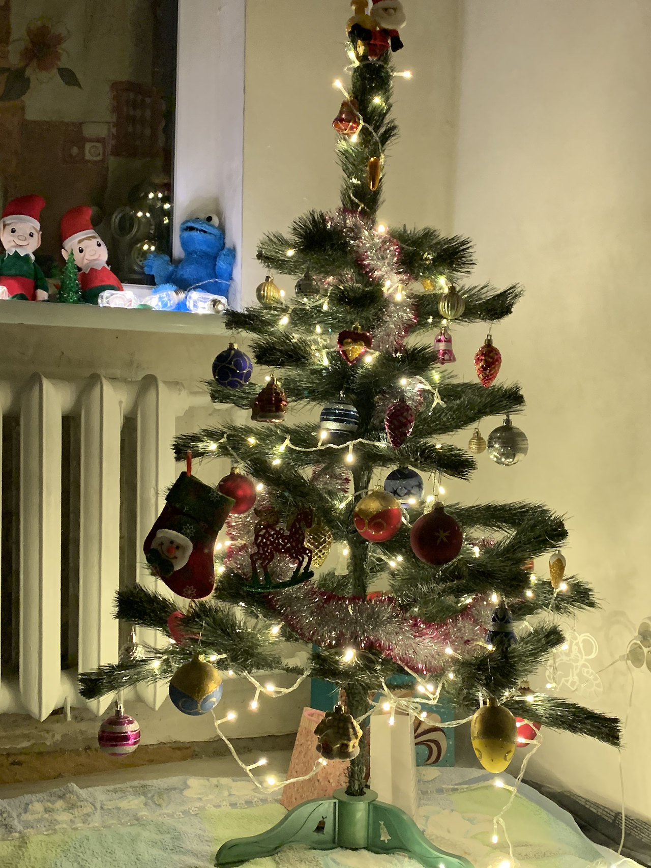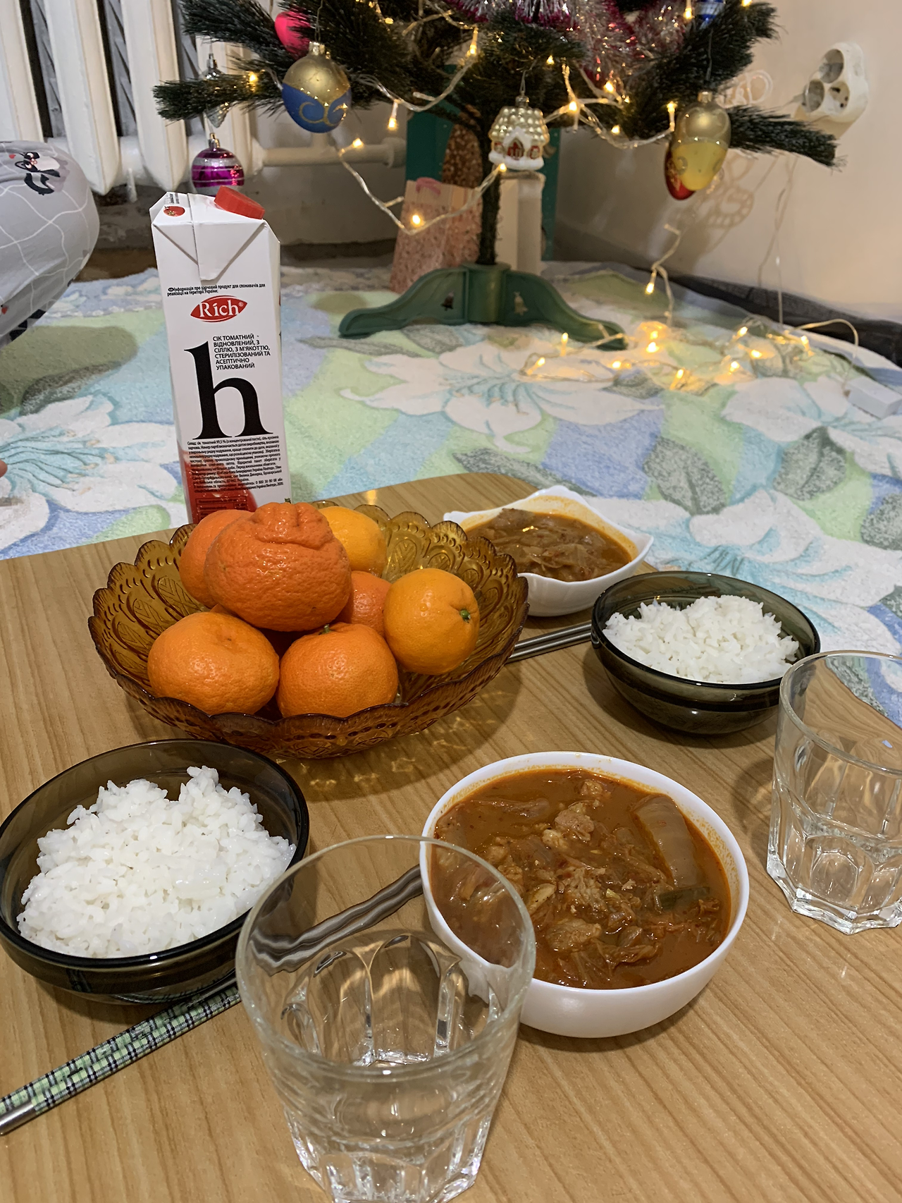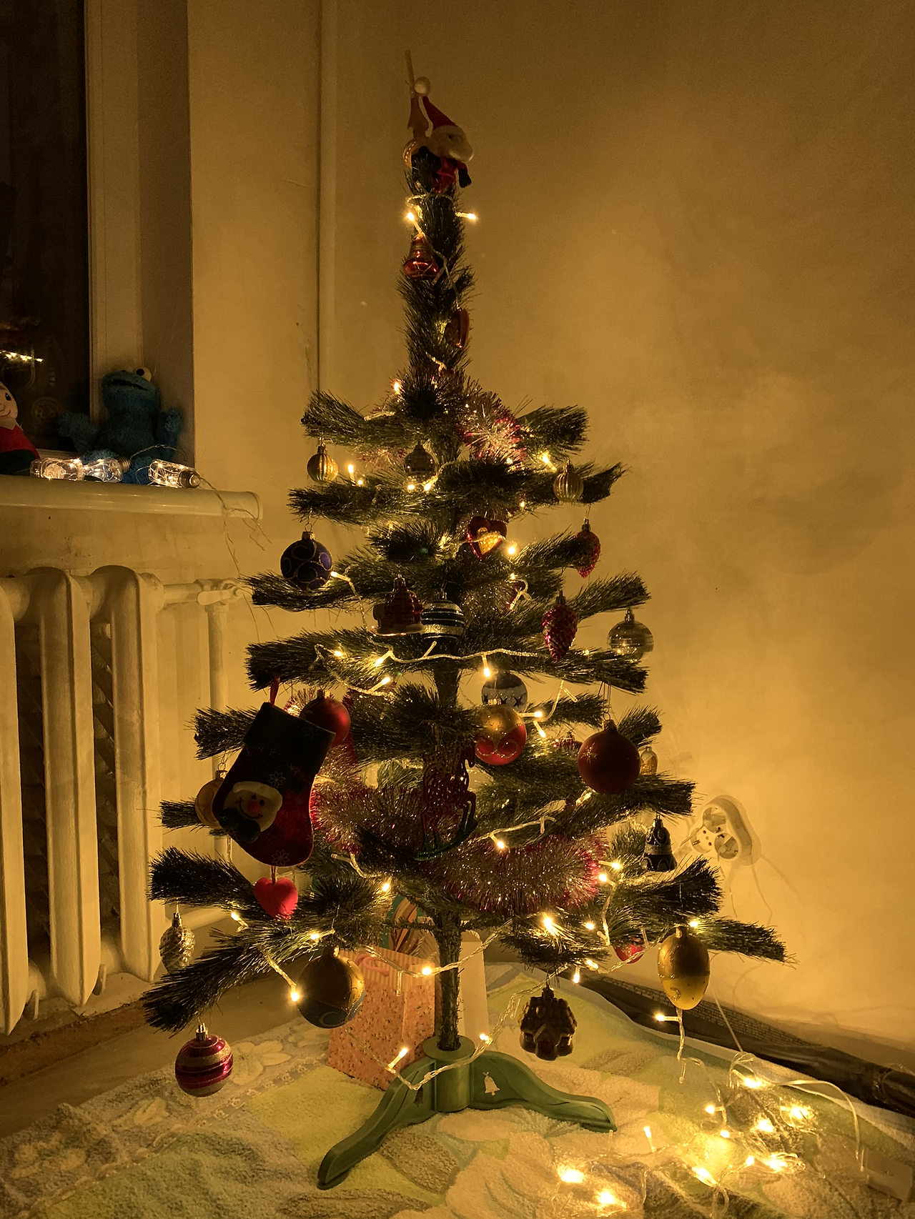 더 이상 숙소에서 홀로 맞이하는 흰색 침대 시트와 적적한 공기가 아닌, 사람 사는 냄새가 나는 방 안으로 들어선 순간 여러 생각이 동시에 스쳤다. 그들은 내가 어떻게 하면 편안하게 잠을 잘 수 있을지, 무엇을 좋아하는지 등을 거듭 고민하면서 하루하루를 보내며 날 기다렸다는 게 느껴졌다. 아직 이사한 지 얼마 되지 않아서 제대로 가구들이 놓여 있지 않은 상황이었음에도 불구하고, 5성급 호텔 버금가는 나를 위한 침대가 준비되어 있었다. 귀여운 스펀지밥 이불, 그 위에 살포시 얹어져 있는 인형들과 바로 씻을 수 있도록 준비해 준 수건, 그리고 괜찮은지 계속해서 나의 표정을 살피며 물어봐주는 가족들이 날 기다리고 있던 것이다. 그저 우크라이나에서 친구를 만나는 것만으로도 내게는 큰 선물이었는데 이들의 따뜻한 보살핌 덕분에 선물이 두 배, 세 배, 아니 배로 표현할 수 없을 만큼 커져버렸다. 짐을 잠깐 내려놓자마자 M은 눈을 감아보라고 했고, 눈을 감았다 뜨니 내 눈앞에서 크리스마스 트리가 반짝이고 있었다. 그때 실감이 조금씩 나기 시작했다. '아 이틀 뒤면 2022년이구나.' 이제는 크리스마스 트리를 지겹도록 봐서 별로 감흥이 없을 거라고 생각했는데 카페나, 길거리에 놓인 트리가 아닌 가정집에서 가족들이 함께 꾸민 아기자기한 트리는 보고 또 봐도 좋았다. 그리고 그 아래에 M도 모르게 놓여있던 M을 위한 가족들의 작은 선물들이 놓여있었다. 가족들의 서프라이즈 성공을 위해 못 본 척하겠다는 M의 모습과 성인이 된 후에도 어렸을 때부터 계속해왔던 것처럼 연말에 트리 밑에 선물을 준비해 준 M의 부모님의 따뜻한 모습도 내겐 참 인상적이었다.
