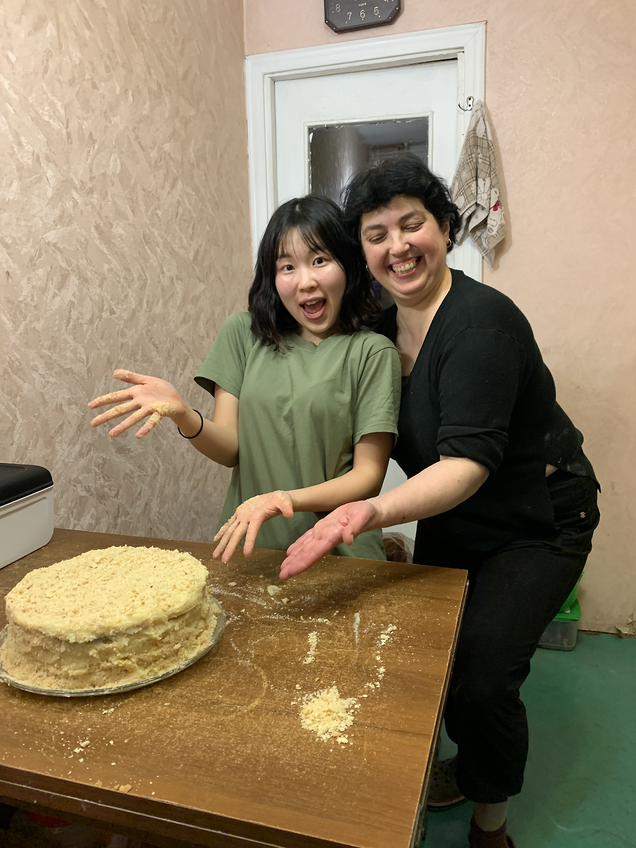 정신을 차려보니 우린 어느 순간 엄마와 딸처럼 케이크를 만들며 1월 1일의 첫 시작을 기다리고 있었다. 한 해의 마지막 날과 새로운 한 해의 시작을 해외에서 처음 보는 가족과 함께 보낸다는 건 참 이색적인 일이다. 연말마다 다른 나라를 여행하면 그 나라마다, 가족마다 연말연시를 보내는 방법을 옆에서 들여다보는 재미가 있다. 유독 옆동네, 옆 나라의 전통을 경험하는 걸 재밌어하는 이유는 아마 연말연시에 무미건조한 우리 집의 문화 덕분이지 않을까. 역시나 올해도 평범하게 하루를 보내고 다음 날 다 같이 모여 만둣국을 먹으며 "이제 2022년이야!"라고 말하며 자연스럽게 하루를 흘러 보냈을 테이다. 예상과 그대로, 한국에 있는 동생이 보낸 사진을 보니 혼자 음식을 해 먹고, 홀로 연말연시를 보내며 만족해하는 모습을 볼 수 있었다. 어렸을 때부터 기념일에 별다른 감흥이 없던 집에서 자랐지만 어디에서나 유별난 가족 중 돌연변이인 나에게는 연말연시란 매우 특별하게 다가왔기 때문에 항상 무언가를 하고 싶었고, 대단한 걸 해내고 싶어 했다. 그중에서 매년 지키고 있는 나만의 전통이 있다면, 양초를 켜고 제야의 종소리 방송을 틀어놓은 후, 한 해 동안 작성한 다이어리를 쭉 읽어보며 일 년을 돌이켜본다. 그리고 곧 맞이할 새로운 해의 버킷리스트를 작성하며 종소리를 듣고, 다이어리를 닫고, 잠에 든다. 아직도 생생하다. 2020년이 지나고 2021년을 맞이할 때, 썼던 하나의 버킷리스트 '2021년을 돌이켜봤을 때, 내가 이걸 해냈다고? 할 만한 것을 이루게 해 주세요.'라고 잠든 순간을. 역시 꿈은 이루어지는 건가, 2021년을 돌이켜보니 나는 홀로 낯선 땅 위에서 모험을 즐기고 있었다. 그리고 2021년 마지막 장을 우크라이나의 한 가정집에서 마마와 케이크를 만들며 그리고 있었다.
