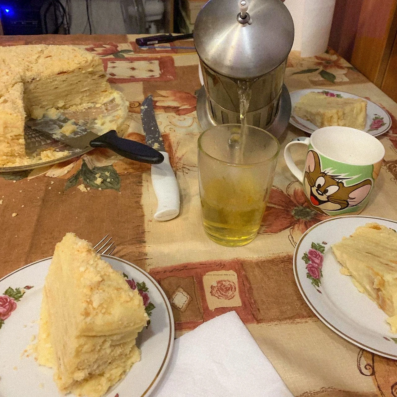 서로 소원을 빌고 동시에 하나, 둘, 셋을 외치고 초를 불었고, 아버님이 직접 내려주시는 차와 함께 케이크를 맛보았다. 케이크의 맛은 상상 그 이상이었다고 감히 표현하려고 한다. 별다른 토핑이 없는 깔끔한 케이크였음에도 불구하고 얇은 케이크 반죽 사이로 겹겹이 쌓인 마마표 나딸레온 크림은 정말 달콤했다. 아마, 이전에 밥을 먹지 않았더라면 케이크 두 조각은 더 먹었지 않았을까. 아직도 가끔, 마마와 함께 케이크를 만들던 순간과 다 같이 모여 케이크를 음미했던 순간이 그립다. 마마는 한국에서도 만들어 볼 수 있도록 레시피를 알려주려고 하셨으나, 그 케이크를 만들기 위한 어떤 크림이 있는데 한국에는 아쉽게도 없었다. 그리고 아마 있었더라도, 혼자 만들 엄두는 못 냈을 게 뻔하지만 아무튼, 이제 어디 가서 좋아하는 케이크가 뭐냐는 물음에 일편단심 아이스크림 케이크만 외치던 내가 새로운 나딸레온 케이크를 말하는 사람이 되었다 (그래도 아이스크림 케이크를 아직 이길 수는 없지만..).
