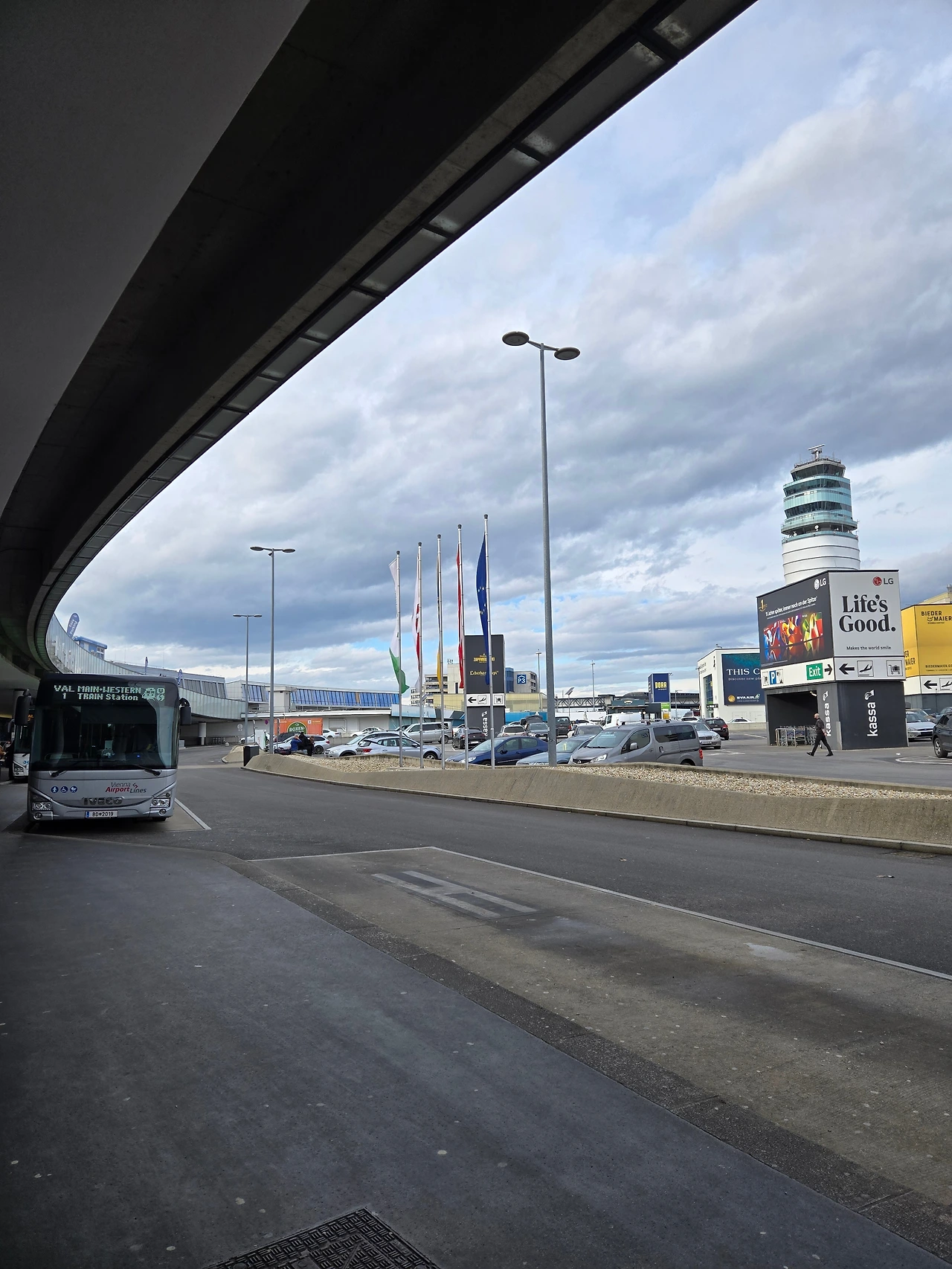 비엔나 공항에서 그라츠로 가는 공항버스(플릭스버스)를 기다리는 중