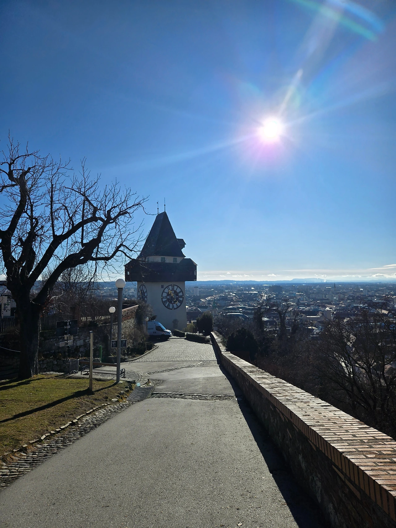 그라츠의 심볼인 시계탑 푸니쿨라를 타고 올라갔다.