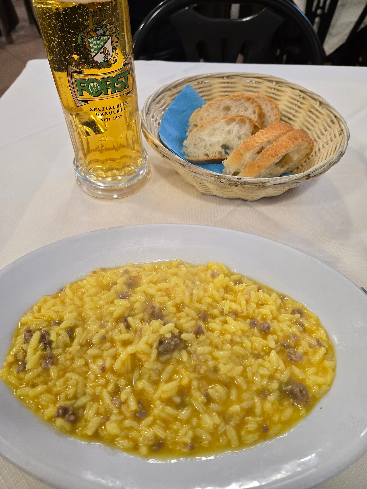 서류인쇄를 위해 방문한 인쇄소 바로 앞에 있는 빨간 대학교. (Universita Bicocca Scienza_비꼬까 과학대학교), 점심시간이 겹쳐 관공서가 일하지 않아 가는 길에 있는 식당에서 나도 점심을 먹었다. 11유로에 3가지 코스가 나오고 메뉴도 코스당 4가지씩 있어 선택의 폭이 넓었다. 한 끼 호사스럽게 먹었다.